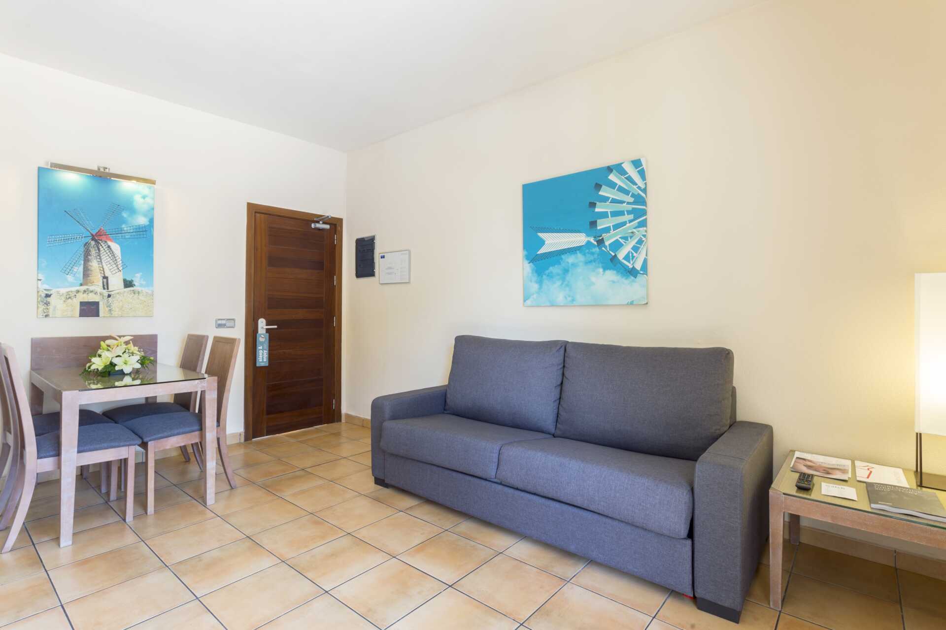 Tvårumslägenhet med balkong eller terrass. Sovrum och kombinerat vardagsrum med minikök. En dubbelsäng eller två enkelsängar. Möjlighet till två extrabäddar i bäddsoffa. Minikök med kokplattor, kylskåp, mikrovågsugn och enkel köksutrustning. Wifi och luftkonditionering ingår. Deponering mot avgift. En tv med internationella kanaler i varje rum. Hårtork. Badrum med badkar och wc. Städning 5 ggr/vecka.