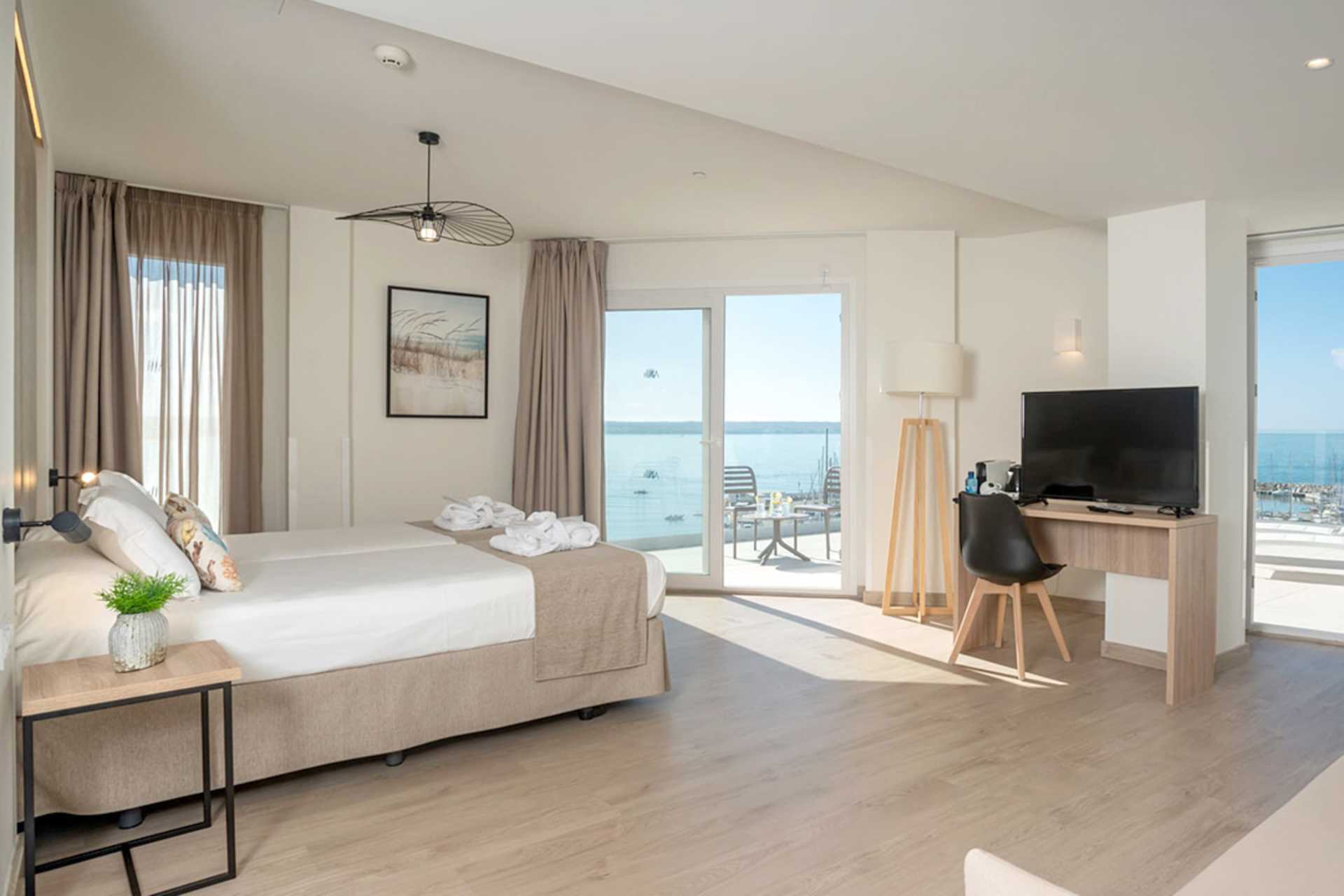 Juniorsvit med balkong och havsutsikt. En dubbelsäng eller två enkelsängar. Möjlighet till extrabädd i bäddsoffa. Wifi, luftkonditionering och deponering ingår. Minibar. Tv med internationella kanaler. Hårtork. Badrum med dusch och wc. Städning 7 ggr/vecka.