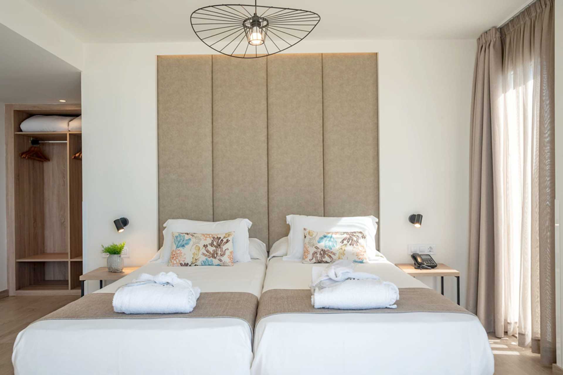 Dubbelrum med balkong, vissa med poolutsikt, begränsad havsutsikt eller med havsutsikt. En dubbelsäng eller två enkelsängar. Möjlighet till extrabädd i bäddsoffa. Wifi, luftkonditionering och deponering ingår. Minibar. Tv med internationella kanaler. Hårtork. Badrum med dusch och wc. Städning 7 ggr/vecka.