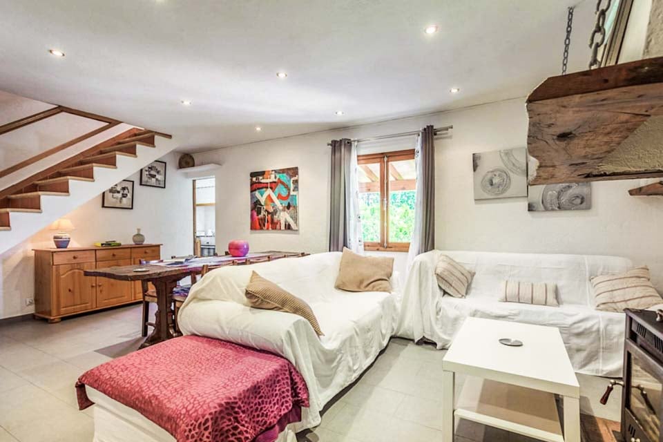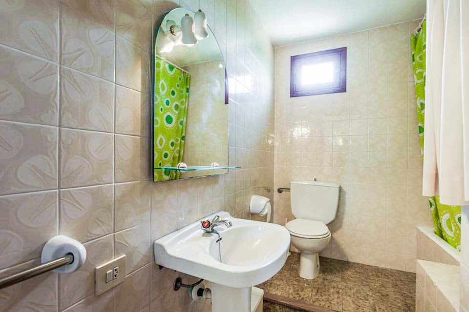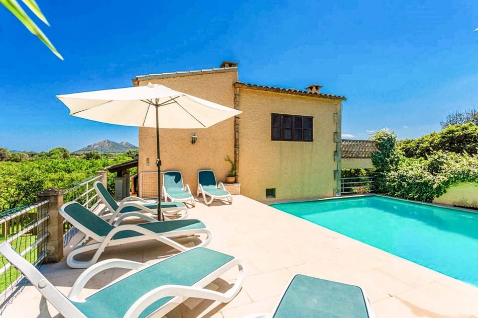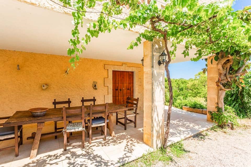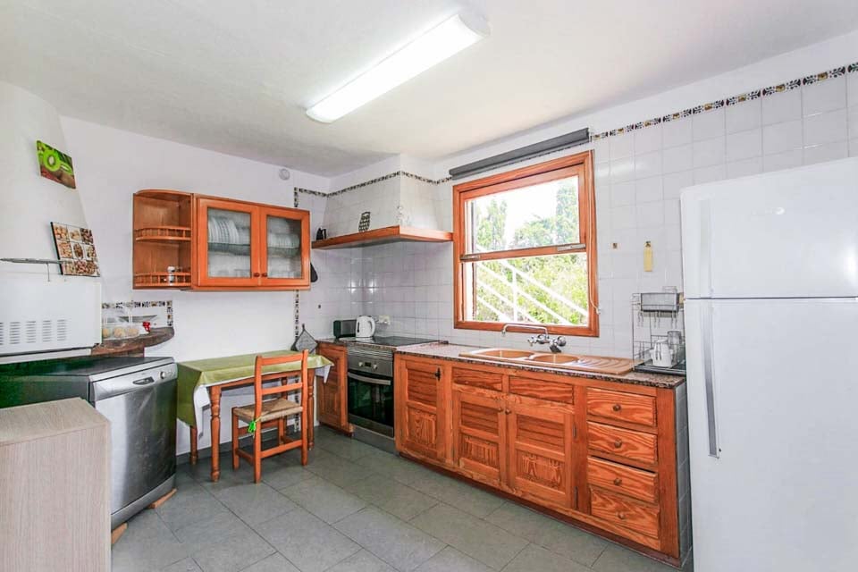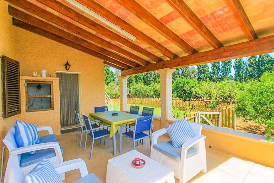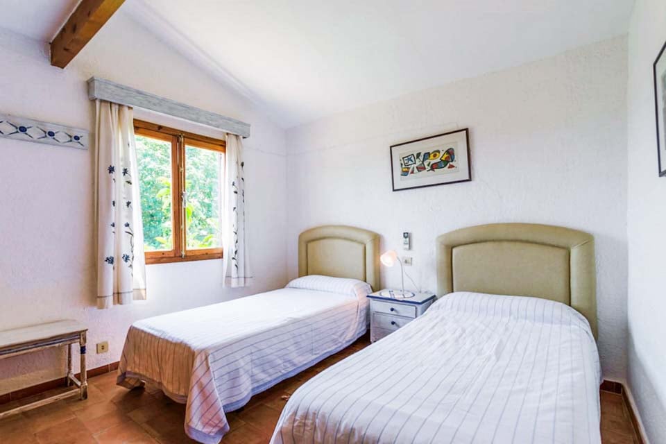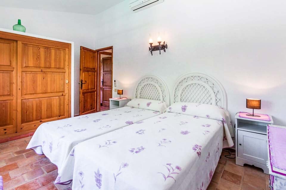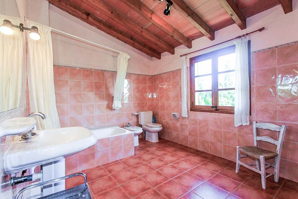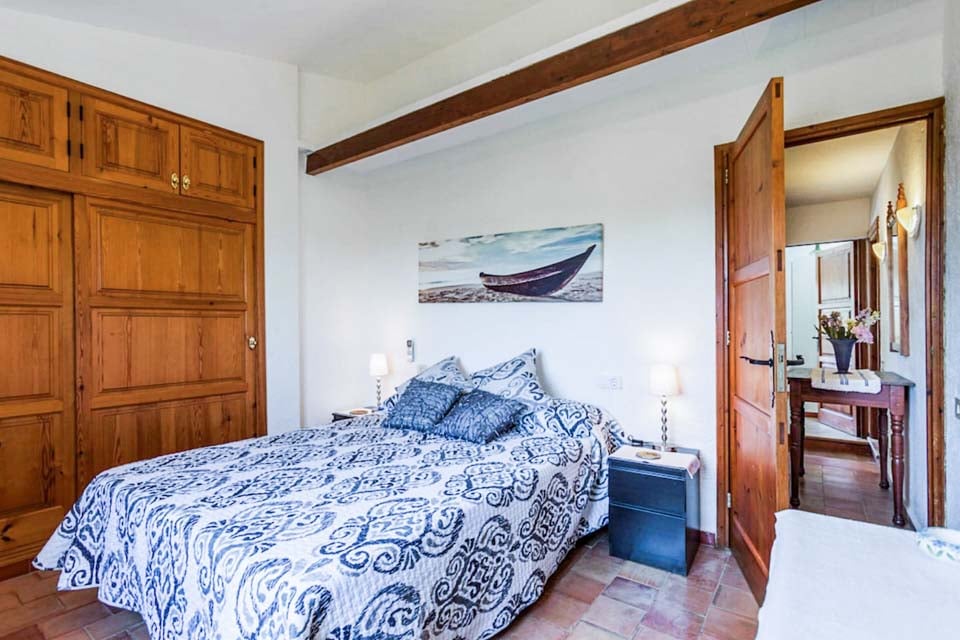 Från den täckta terrassen har du direkt tillgång till det fullt utrustade köket, komplett med kyl-frys, mikrovågsugn och diskmaskin. Fortsätt igenom så kliver du in i det mysiga vardagsrummet och matplatsen, med bekväma sittplatser, ett rustikt matbord och en platt-TV med DVD-spelare. På övervåningen hittar vi alla tre sovrum, ett dubbelrum och två tvåbäddsrum som delar två separata familjebadrum. Alla sovrum har luftkonditionering för att hålla dig sval under de varma mallorcinska nätterna.