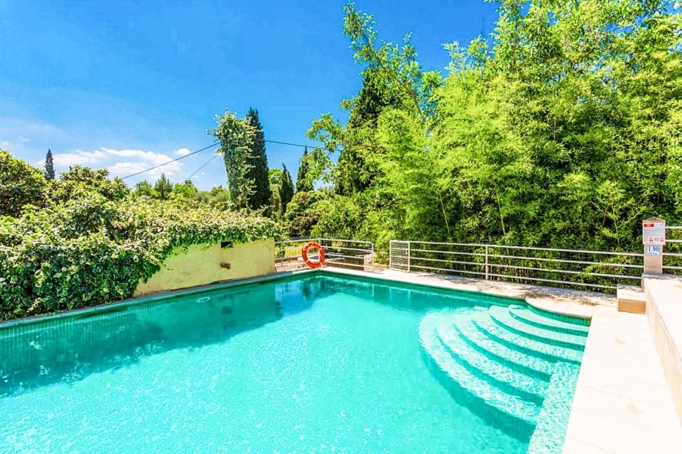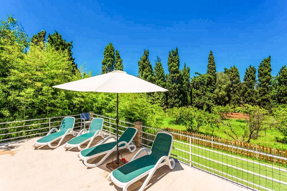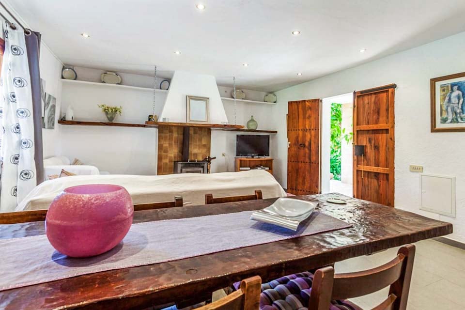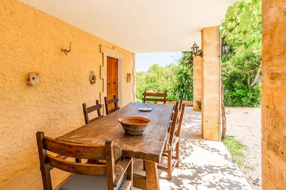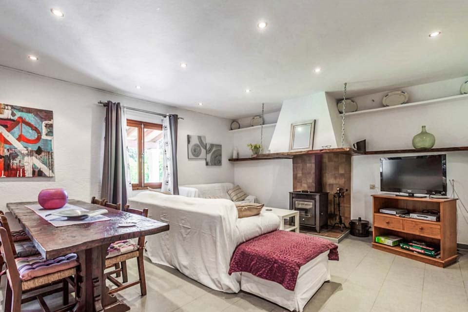 På Can Font Roig hittar vi en generös terrass med en fyrkantig pool med grindar, rundade, svepande trappsteg och solstolar. En täckt terrass är den perfekta platsen för måltider utomhus, med ett matbord med plats för alla sex gäster och en tegelgrill. Det finns också en inhägnad trädgård, vilket är en perfekt plats för de små att springa runt på.