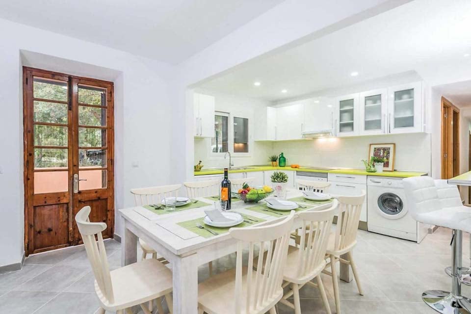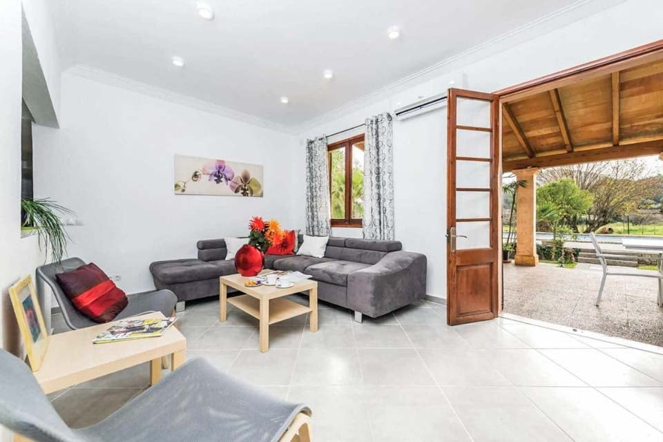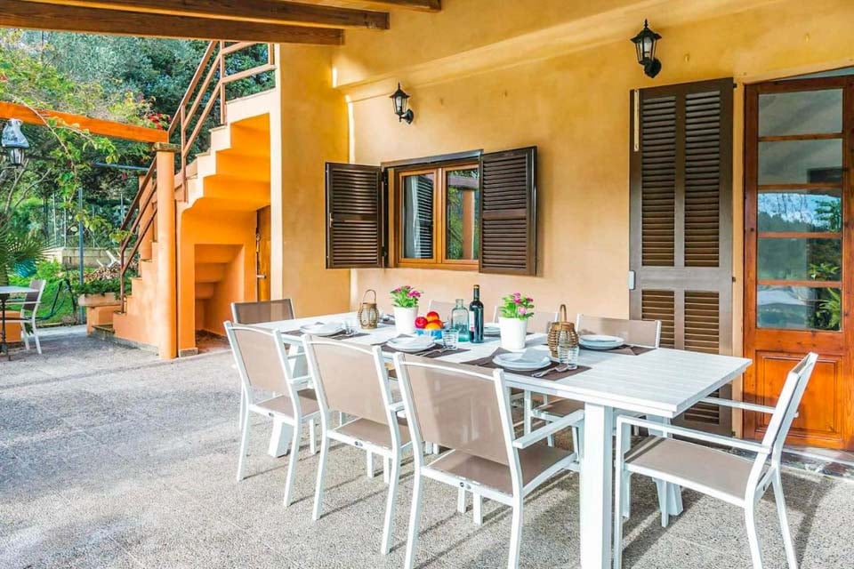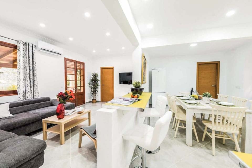 Utanför är villans juvel den stora, glittrande poolen på 10 x 5 meter, omgiven av solstolar och i söderläge, som garanterar den varma mallorcinska solen hela dagen lång.
