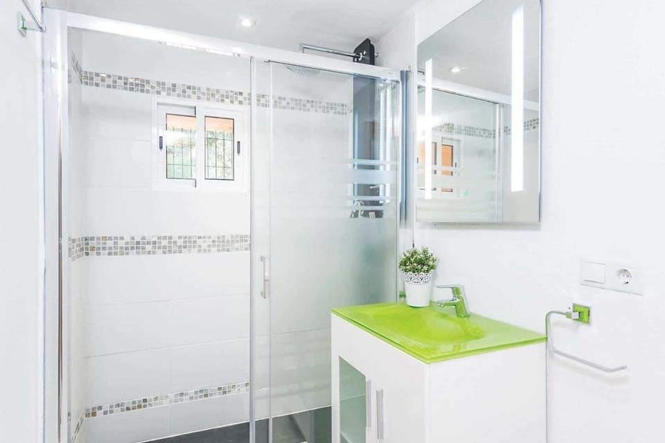 För att komma till villan finns en 130 cm lång stig med 6 trappsteg. Ytterdörren har en bredd på 110 cm och den andra dörren som leder till poolområdet är bakdörren som är 100 cm bred. Gångvägarna från villan till poolområdet är 110 cm breda och tomten ligger på olika nivåer. Det finns flera trappsteg som leder upp till villan och ner till poolområdet från terrassen. Interiört finns det 2 trappsteg ner till 2 sovrum. Alla sovrum har en dörrbredd på 70 cm och alla badrum har en dörrbredd på 70 cm. Dörren in till kök/matplats är 75 cm bred och dörren in till vardagsrummet är 75 cm bred. *Observera att även om vi har gjort allt för att säkerställa att informationen som lämnas är korrekt, kan fel uppstå och om du behöver mer specifik information om villan, tveka inte att kontakta oss.