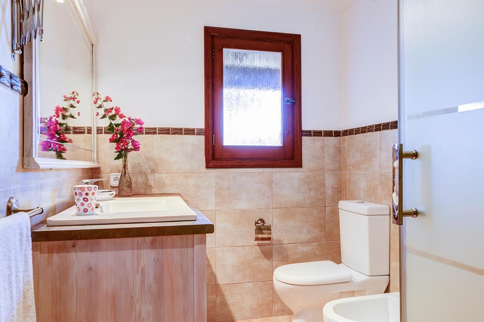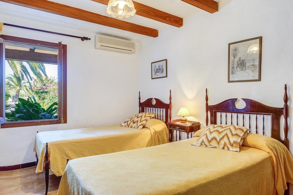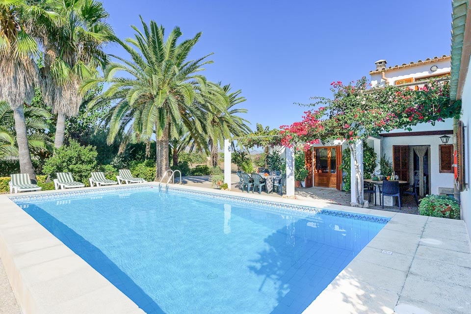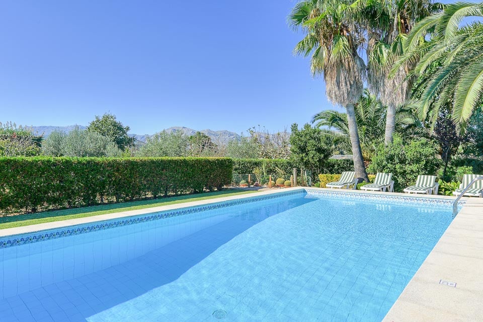 Casa La Palmera är en fantastisk villa belägen i ett lugnt och fridfullt läge i utkanten av den magnifika gamla staden Pollensa. Flankerad av mogna palmer och ett överflöd av färgglada medelhavsväxter, samt frodiga etablerade vinrankor, har Casa La Palmera en behagligt pastoral känsla, men du är mindre än fem minuters bilresa från faciliteterna i närliggande Pollensa. De rikliga utomhusytorna är särskilt tilltalande här, med en attraktiv skuggig terrass som är den perfekta platsen för måltider utomhus, en perfekt plats att luta sig tillbaka och koppla av medan man tittar på de yngre familjemedlemmarna plaska omkring i den lockande, större än genomsnittet, poolen. Interiören har också sina egna charmiga kvaliteter med träbjälkar i taket och luftkonditionering i hela huset, och en särskilt bekväm soffa att luta sig tillbaka i medan du tittar på dina valfria semester-DVD-skivor på tv:n! För de som vill utforska det vackra omgivningarna kan Pollensa, Puerto Pollensa och Alcudia alla nås inom femton minuter med bil, och för de som söker lite shoppingterapi finns det en mängd färgglada butiker och attraktiva butiker att rota runt i. Strandälskare kommer att uppskatta både Puerto Pollensa och Puerto Alcudia, liksom den otroligt vackra stranden Formentor, ett måste att besöka när man besöker denna underbara norra kustlinje på Mallorca.