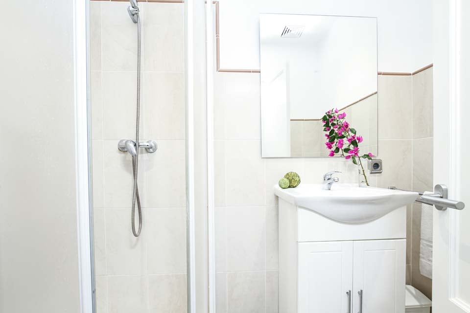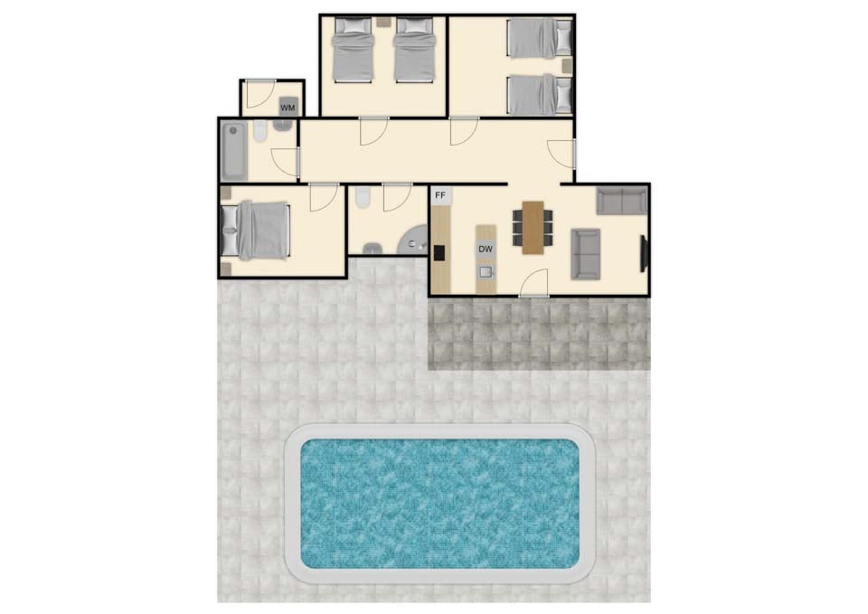 För att komma till villan finns en öppen stig som är 235 cm bred. Både ytterdörren och dörrarna till terrassen har en dörrbredd på 130 cm. Utsidan är en öppen kaklad terrass som är relativt plan, poolvägens bredd är 110 cm. Detta är en villa på bottenvåningen. Inne i villan har alla sovrum en dörrbredd på 75 cm medan båda badrummen har en dörrbredd på 67 cm. Dörren in till köket är 64 cm bred medan dörren in till vardagsrummet är 110 cm bred. *Observera att även om vi har gjort allt för att säkerställa att informationen som lämnas är korrekt, kan fel uppstå och om du behöver mer specifik information om villan, tveka inte att kontakta oss.
