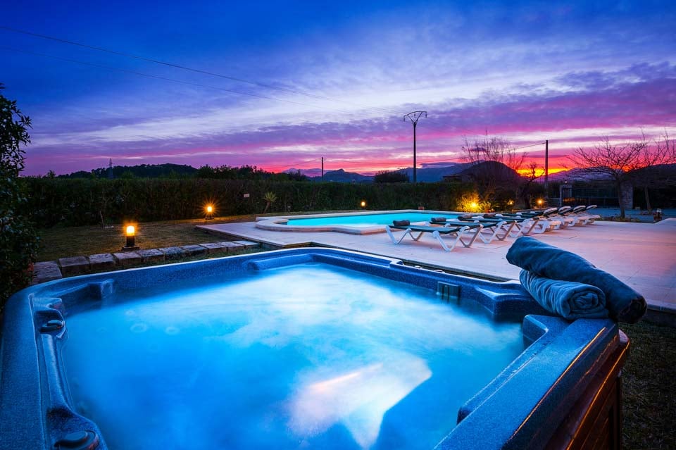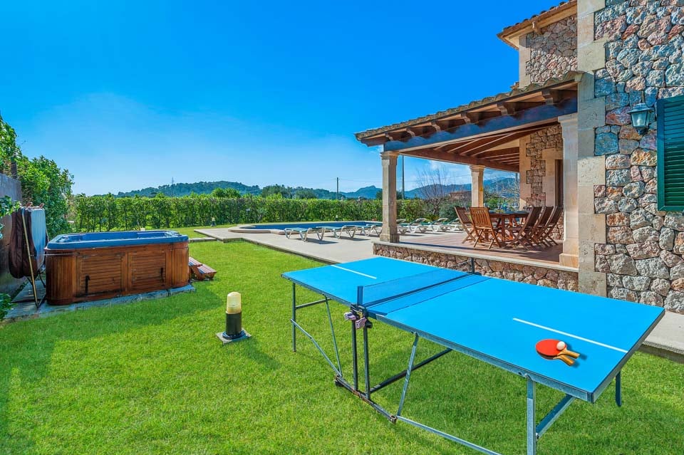 Utomhus kan gästerna njuta av en härlig dag med familj och vänner, eftersom boendet erbjuder inte bara en stor pool, utan även en bubbelpool, en grill och bordtennis. Njut av att laga mat med lokala råvaror och äta utomhus med den fantastiska utsikten som området har att erbjuda.