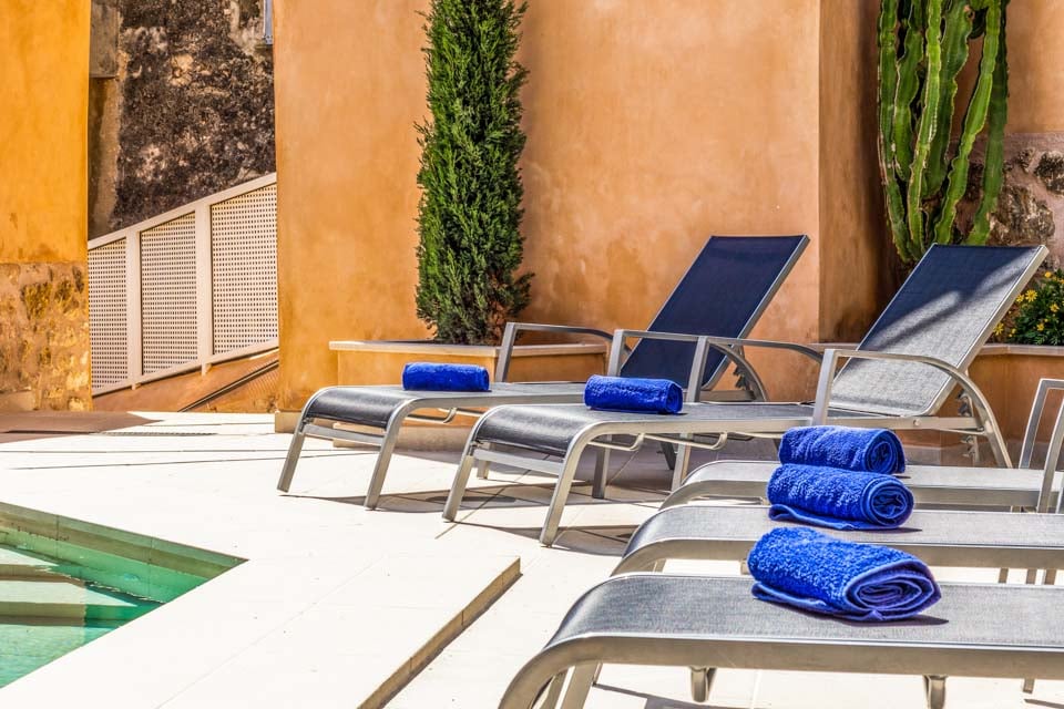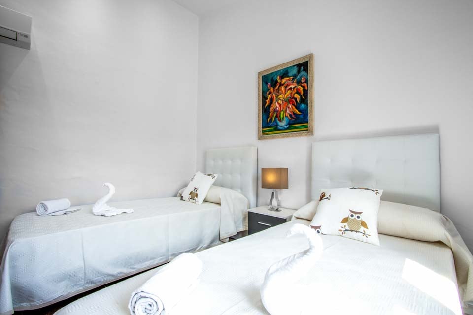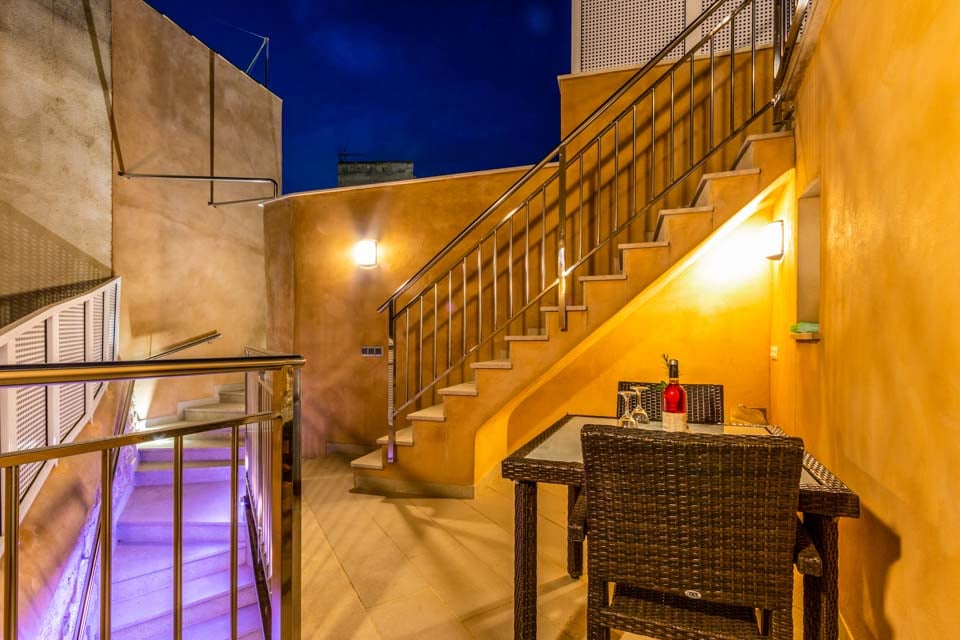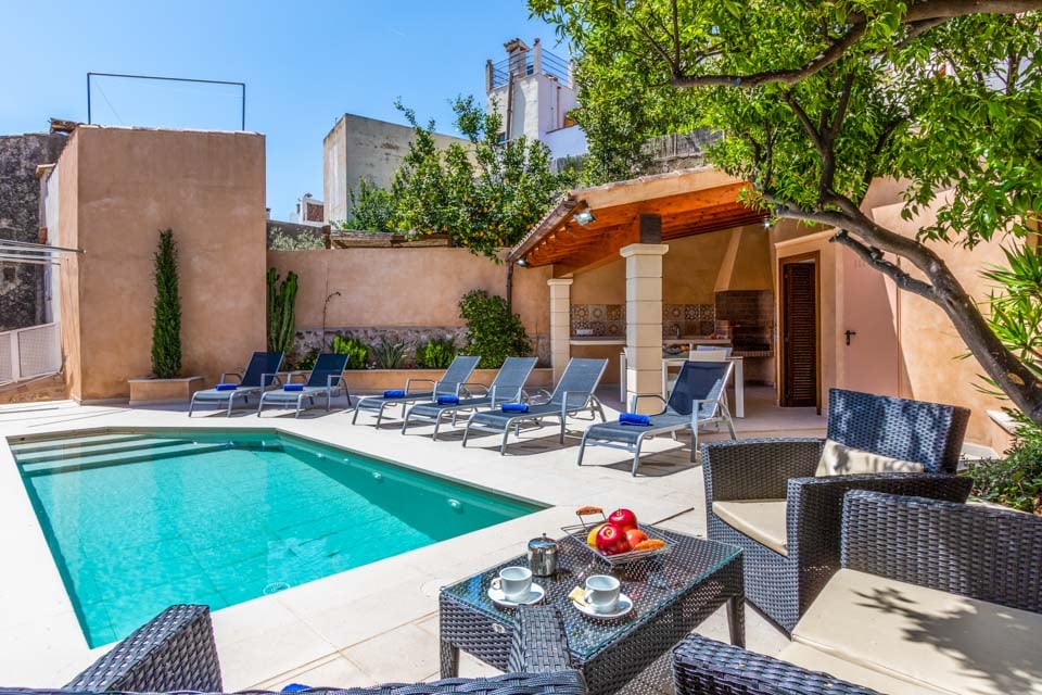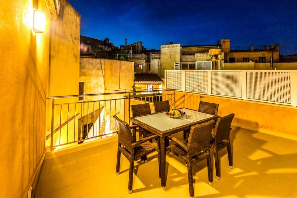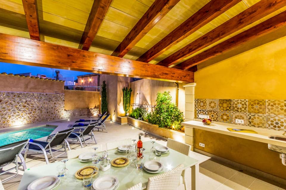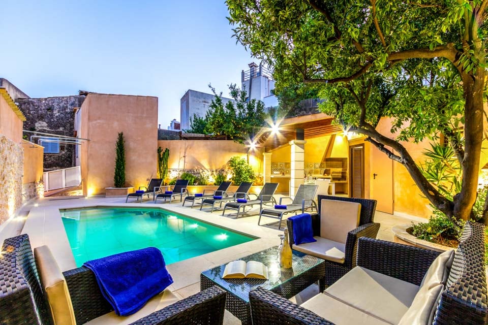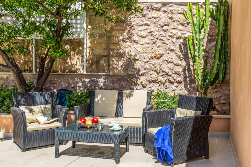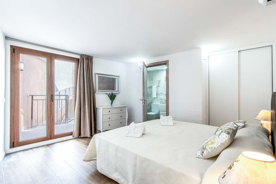 Inbäddat bland bakgatorna i Pollensas gamla stadskärna är detta charmiga radhus ett måste att se! Beläget bara ett stenkast från radhuset som en gång ägdes av den berömda målaren Dionis Bennassar, är denna charmiga antika stad full av historia, kullerstensgator och medeltida kyrkor. Kantad av cypresser leder den berömda Calvario-trappan, hela 365 stycken, från torget och till det lilla Calvario-kapellet högst upp. Klättringen är väl värd ansträngningen! Om du inte känner för att vandra uppför dessa gamla trappsteg, håll dig då till marknadstorget, fyllt med traditionella restauranger som serverar läckra rätter och läckra tapas. Den bästa delen? Du är bara två minuters promenad bort.