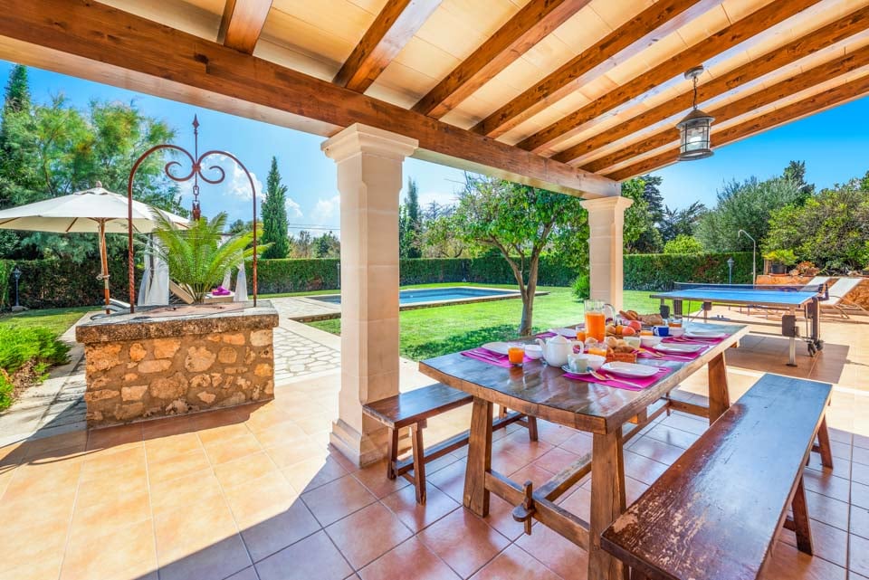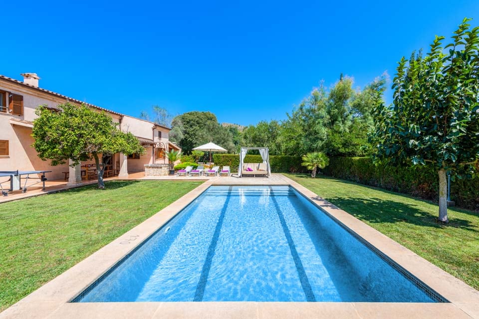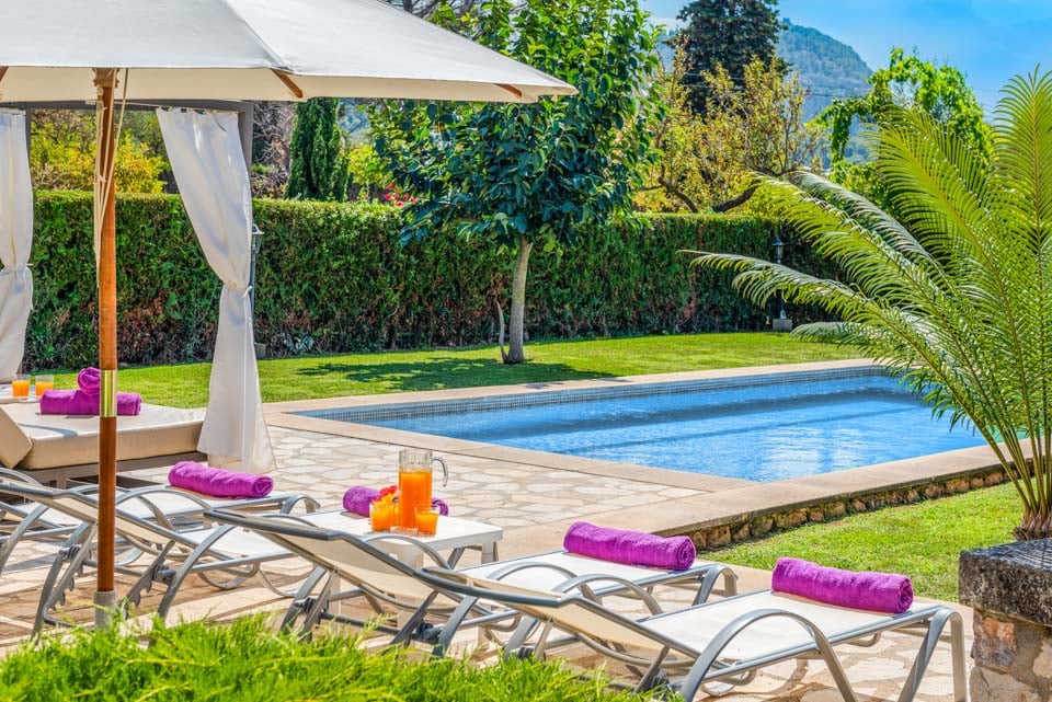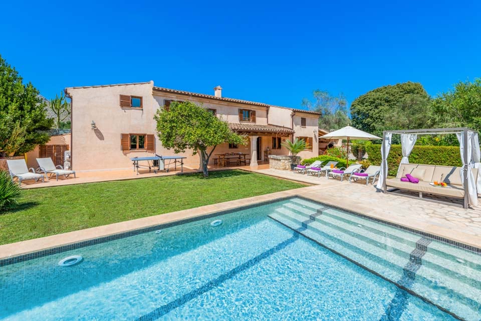Villa Nou är en härlig villa med tre sovrum i Pollensas mandelträdgårdar på Mallorca. Villan är byggd i traditionell spansk stil och har en naturlig nyans, tegeltak och träbjälkar i taket. Det ligger i en stor trädgård med palmer och fruktträd.
