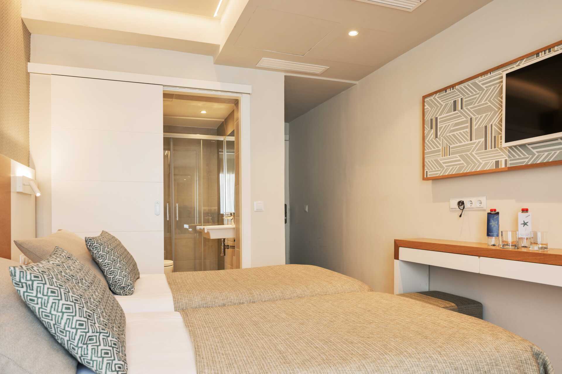 Superiorrum med balkong, vissa med begränsad havsutsikt. En dubbelsäng eller två enkelsängar. Möjlighet till extrabädd i bäddsoffa. Wifi, luftkonditionering och deponering ingår. Kylskåp. Vattenkokare samt kaffe och te. Tv med internationella kanaler. Hårtork. Badrum med dusch och wc. Städning 7 ggr/vecka.