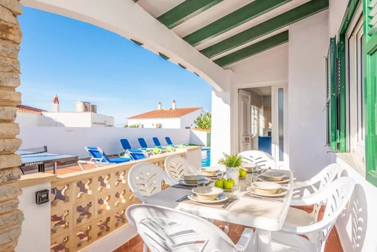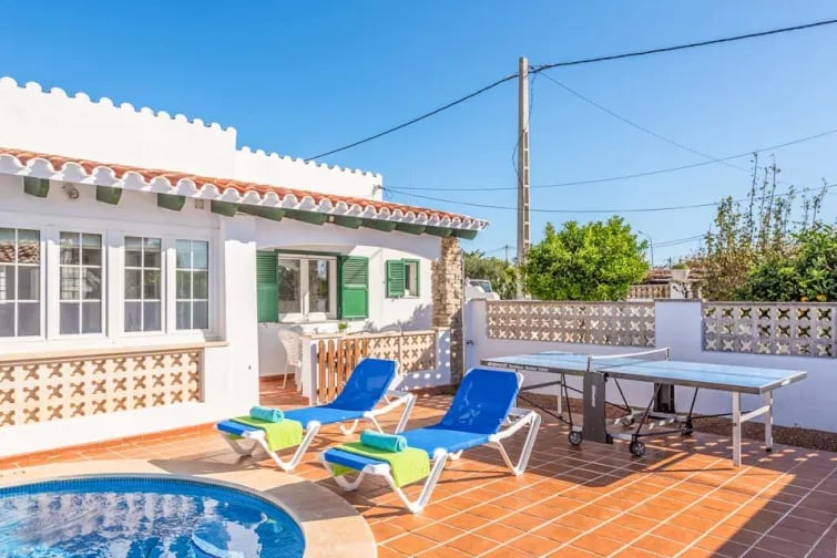 Utanför väntar en fridfull, soldränkt terrass med en skimrande turkos pool, gott om solstolar, med ett pool-/biljardbord och bordtennis för en plats för vänlig tävling. Sandsökare kommer inte att bli besvikna, med Cala en Porters pittoreska sandstrand som är en fristad för sol och bad, medan strandpromenaden erbjuder en avkopplande promenad längs kusten.