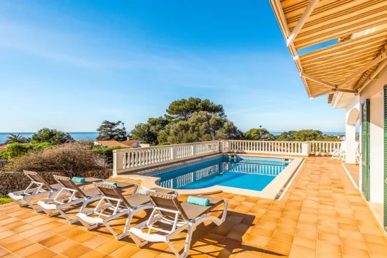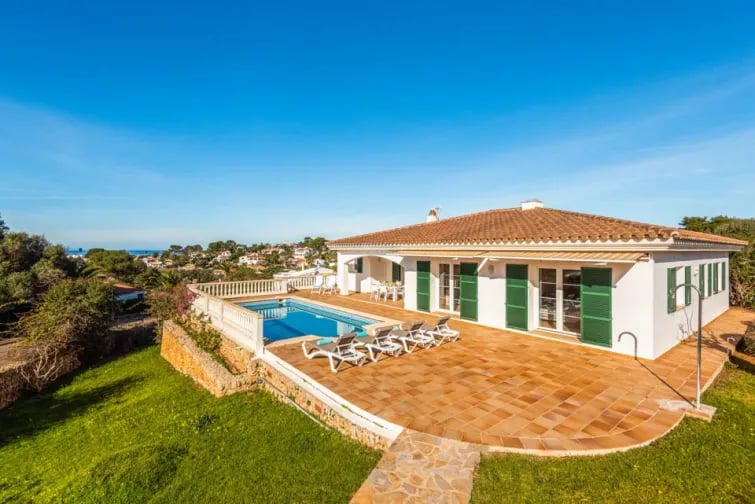 Denna vackra villa är extremt väl belägen i den eftertraktade semesterorten Binibeca. Dess höga läge gör att panoramautsikten från poolterrassen är fenomenal och på mindre än 10 minuters promenad till den fantastiska sandstranden, vad mer kan man begära? Restauranger och butiker ligger också inom räckhåll och den vackra vitkalkade fiskebyn Binibeca Vell ligger bara en kort promenad bort.