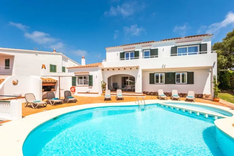 Denna vackra menorcanska villa ligger i ett avundsvärt läge inom gångavstånd från stranden, butiker och många fina restauranger i Cala Galdana, en av Menorcas mest eftertraktade och förtjusande semesterorter. Villan genomgår för närvarande renoveringar och inkluderar totalt fyra sovrum, alla luftkonditionerade. De två sovrummen på första våningen har ett eget badrum och det andra har tillgång till ett duschrum. Båda har tillgång till en balkong med vacker utsikt. Casa Maria är stilfullt möblerad, men har ändå behållit den traditionella charmen hos en klassisk menorcansk villa. Från den öppna planlösningen med vardagsrum/matsal leder altandörrar ut till en täckt terrass med utsikt över det rymliga poolområdet med en underbar pool, gott om plats att sola och en traditionell tegelgrill perfekt för måltider utomhus.**På grund av San Joan-festivalen accepterar vi endast familjebokningar för alla bokningar som inkluderar 22–24 juni.**