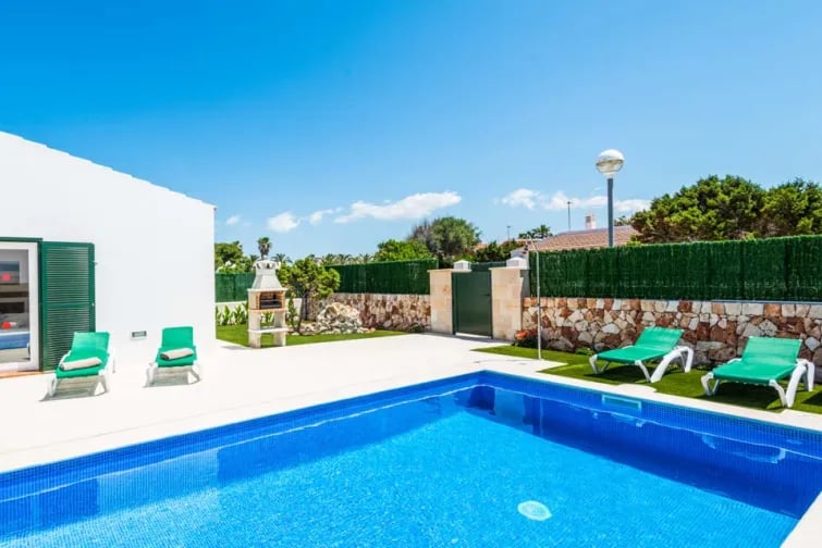 Villa Sa Sivina har ett fantastiskt läge, bara 15 minuters promenad från den charmiga småbåtshamnen i Cala'n Bosch. Fylld med så många lokala restauranger och barer kommer du att bli bortskämd med valmöjligheter. Gå lite längre och du kommer till den vackra vita sandstranden, en fantastisk plats för att bygga sandslott och snorkla. Om du inte känner för att utforska är Sa Sivina den idealiska platsen för avkoppling. Poolen och terrassen är inhägnade för avskildhet där du hittar gott om solstolar att koppla av med din favoritbok. En terrass i pergolastil, perfekt för uteservering, är det perfekta stället att njuta av en kvällsgrillning med ett glas vin medan du ser fram emot de kommande dagarna.