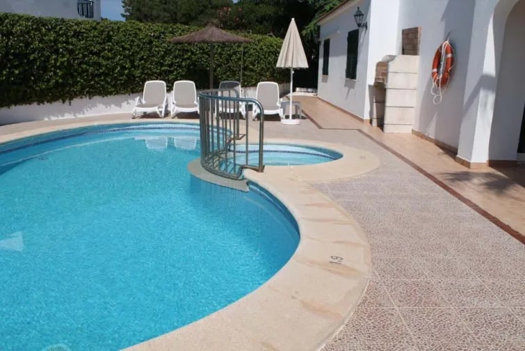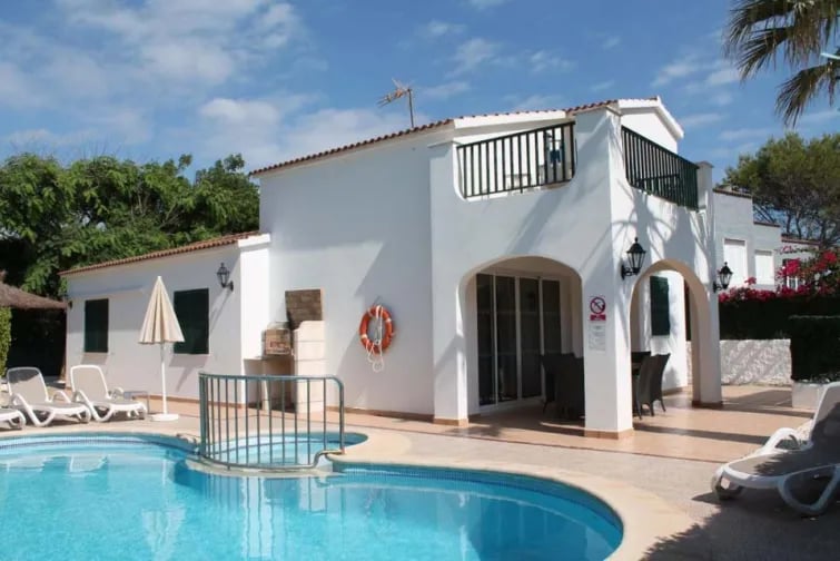 Villan själv har fyra sovrum, två med badrum och ett separat badrum för de andra att dela. Ett vardagsrum i öppen planlösning med ett modernt utrustat kök och trendig inredning leder direkt utanför till en skuggig terrass möblerad med ett matbord och stolar. En härlig friformspool kantas av tjocka häckar och det finns gott om solstolar att luta sig tillbaka på och fylla på i solskenet i Menorcas varma solsken. En tegelgrill finns också som gör utomhuslivet till en bris på nätter när du bara vill koppla av i villan.