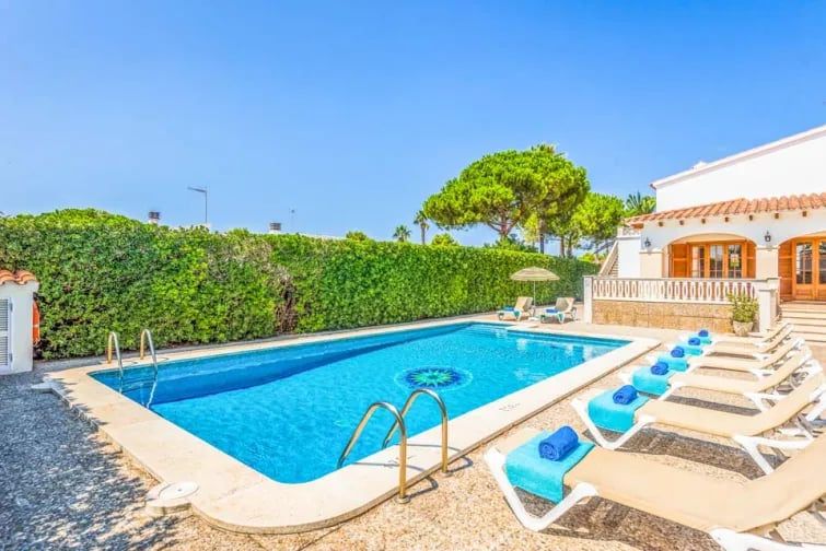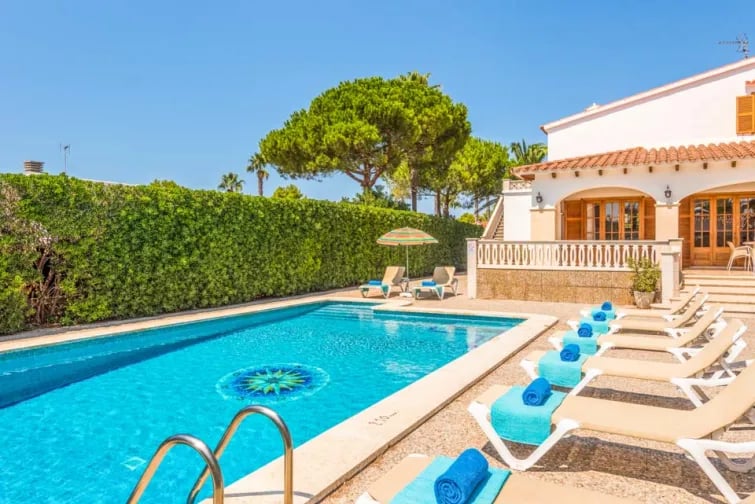 Denna imponerande villa med fem sovrum ligger inbäddad i en stor, färgstark medelhavsträdgård inom en kort promenad från Santandrias vackra strand och de utmärkta restaurangerna, kaféerna och butikerna i Cala Blanca, vilket gör detta till ett populärt semestermål.