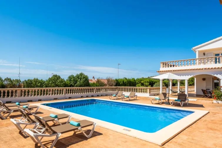 Denna villa ligger i en återvändsgränd och är perfekt för dem som föredrar att vara till fots. En promenad ner till Punta Prima och du kommer att upptäcka en vacker strand och restauranger vid vattnet. Stranden är känd för sin pudervita sand och det varma, grunda vattnet som är perfekt för små. Om du vill utforska ytterligare är det en kort bussresa till Menorcas huvudstad Mahon.
