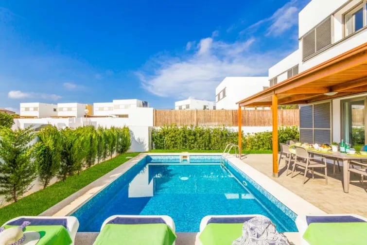 Villa Melody erbjuder fyra luftkonditionerade sovrum, alla med inbyggda garderober och möbler av hög kvalitet. Tre badrum är fördelade över de två våningarna, samt ett fullt utrustat kök och en öppen planlösning med vardagsrum/matsal varifrån stora glasdörrar leder direkt ut på terrassen med din egen inbjudande pool och en täckt yta perfekt för att äta utomhus. På baksidan av huset finns en lummig gräsmatta, perfekt för barnen att springa runt och spela spel.