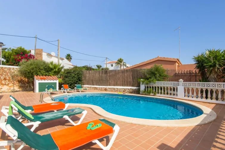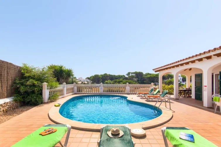 En kort promenad från centrum av Cala en Porter, är Villa Olga det perfekta valet för dem som vill ha ett lugnare läge men ändå inom räckhåll för allt som denna livliga semesterort har att erbjuda. En av de mer populära stränderna för familjer på grund av det kristallklara grunda vattnet och den fina gyllene sanden, kan denna vackra vik nås via trappor mindre än 10 minuter från villan eller på väg genom orten lite längre fram. Några minuter från villan kan du äta ute med spektakulär havsutsikt över stranden på populära Club Menorca, medan huvudutbudet av matställen, barer och stormarknader ligger bara lite längre bort.
