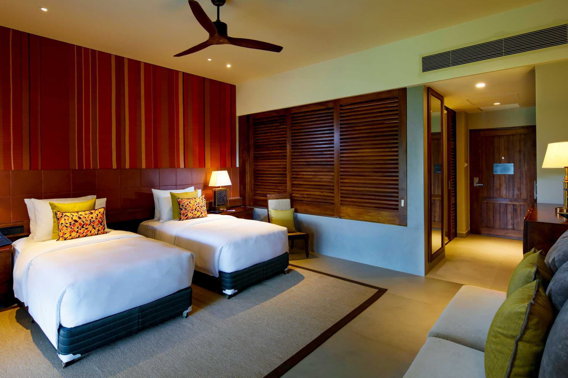 Dubbelrum med balkong eller terrass. En dubbelsäng eller två enkelsängar. Möjlighet till extrabädd i bäddsoffa. Kuddmeny. Wifi, luftkonditionering och deponering ingår. Takfläkt. Minibar mot avgift. Tv med internationella kanaler. Strykjärn och strykbräda. Badrockar och tofflor. Hårtork. Badrum med öppen planlösning till tvättställ och badkar samt separat dusch och separat wc. Städning 7 ggr/vecka.