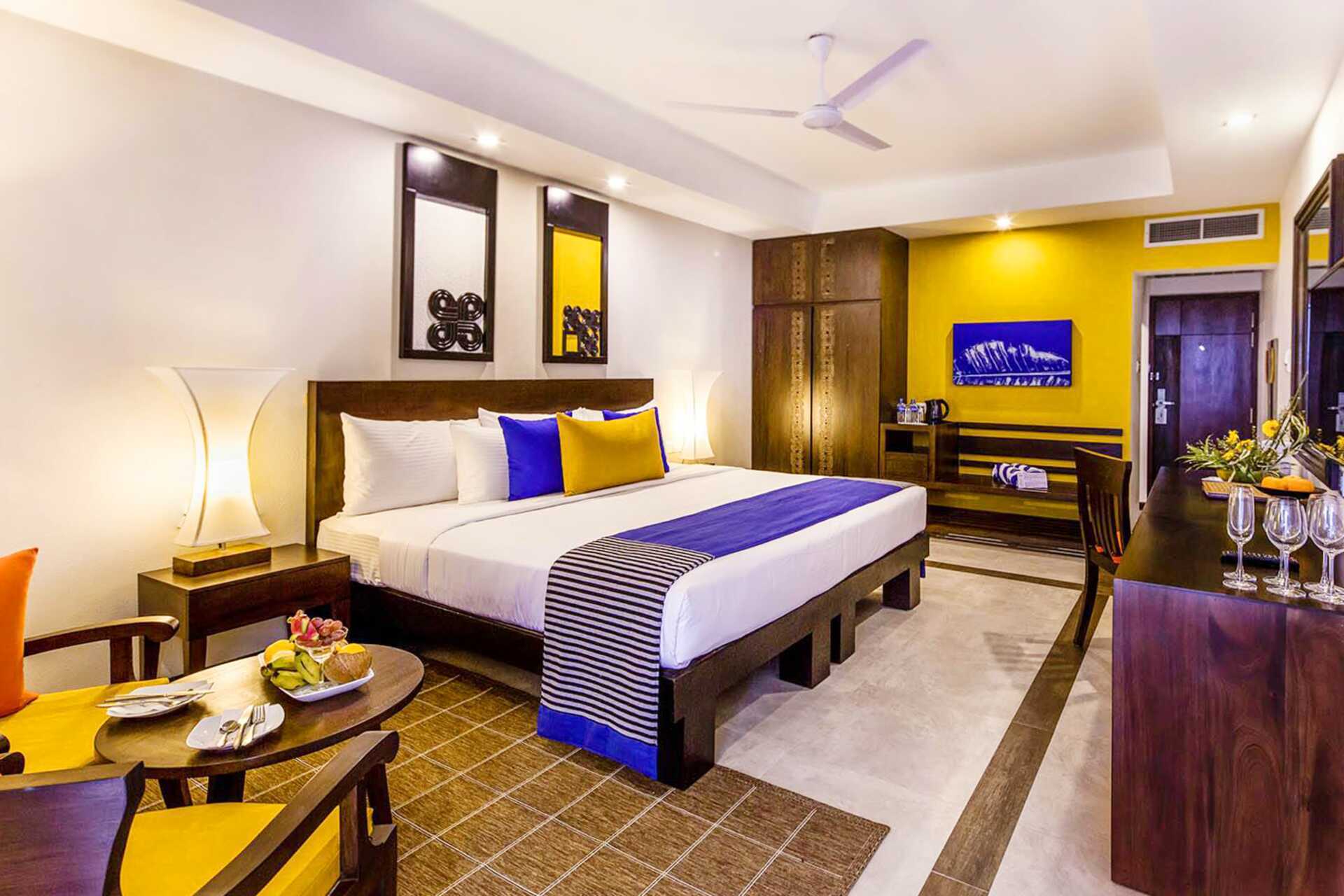 Superiorrum med antingen balkong eller terrass, vissa med havsutsikt. En dubbelsäng eller två enkelsängar. Möjlighet till extrabäddar i enkelsäng och/eller i befintliga sängar. Wifi, luftkonditionering och deponering ingår. Takfläkt. Kylskåp. Vattenkokare samt kaffe och te. Tv med internationella kanaler. Hårtork. Badrum med dusch och wc. Städning 7 ggr/vecka.