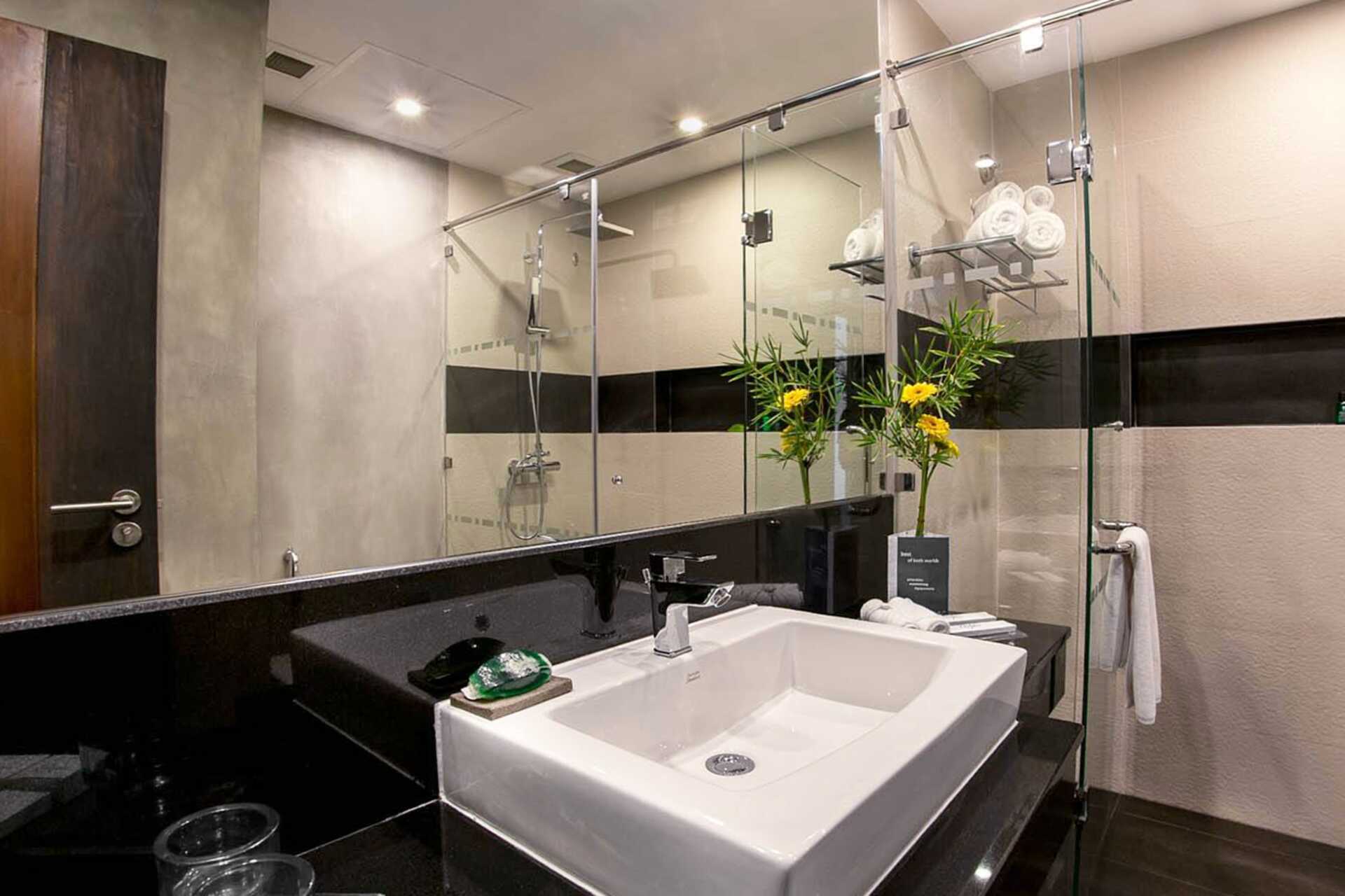 Superiorrum med uteplats och poolaccess. En dubbelsäng eller två enkelsängar. Möjlighet till extrabäddar i enkelsäng och/eller i befintliga sängar. Wifi, luftkonditionering och deponering ingår. Takfläkt. Kylskåp. Vattenkokare samt kaffe och te. Tv med internationella kanaler. Hårtork. Badrum med dusch och wc. Städning 7 ggr/vecka.