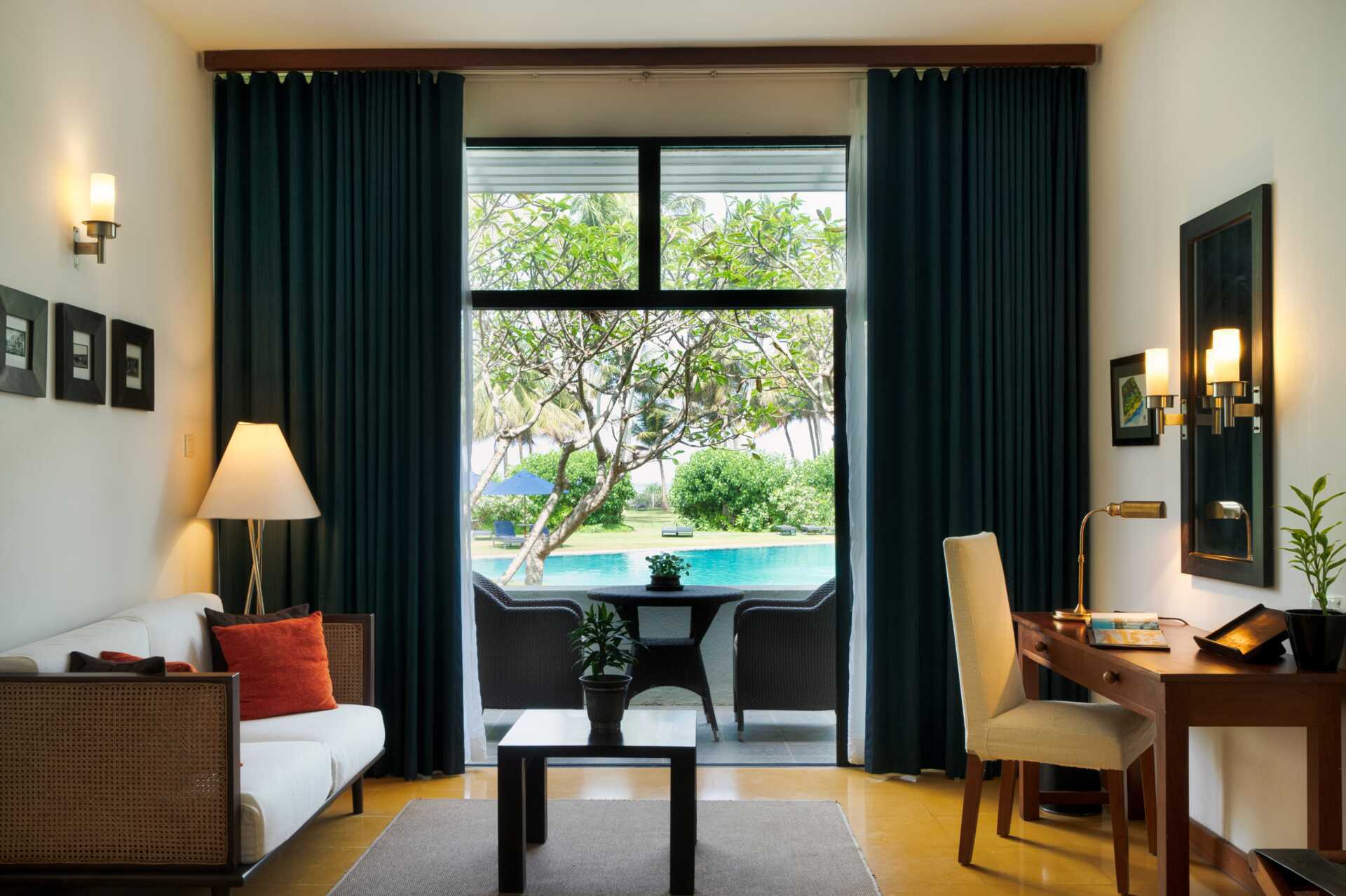 Svit med markterrass och begränsad havsutsikt. Sviterna består av ett kombinerat sovrum och vardagsrum. En dubbelsäng eller två enkelsängar. Wifi, luftkonditionering och deponering ingår. Vattenkokare samt kaffe och te. Tv med internationella kanaler. Badrockar och tofflor. Hårtork. Badrum med badkar, separat dusch samt wc. Städning 7 ggr/vecka.