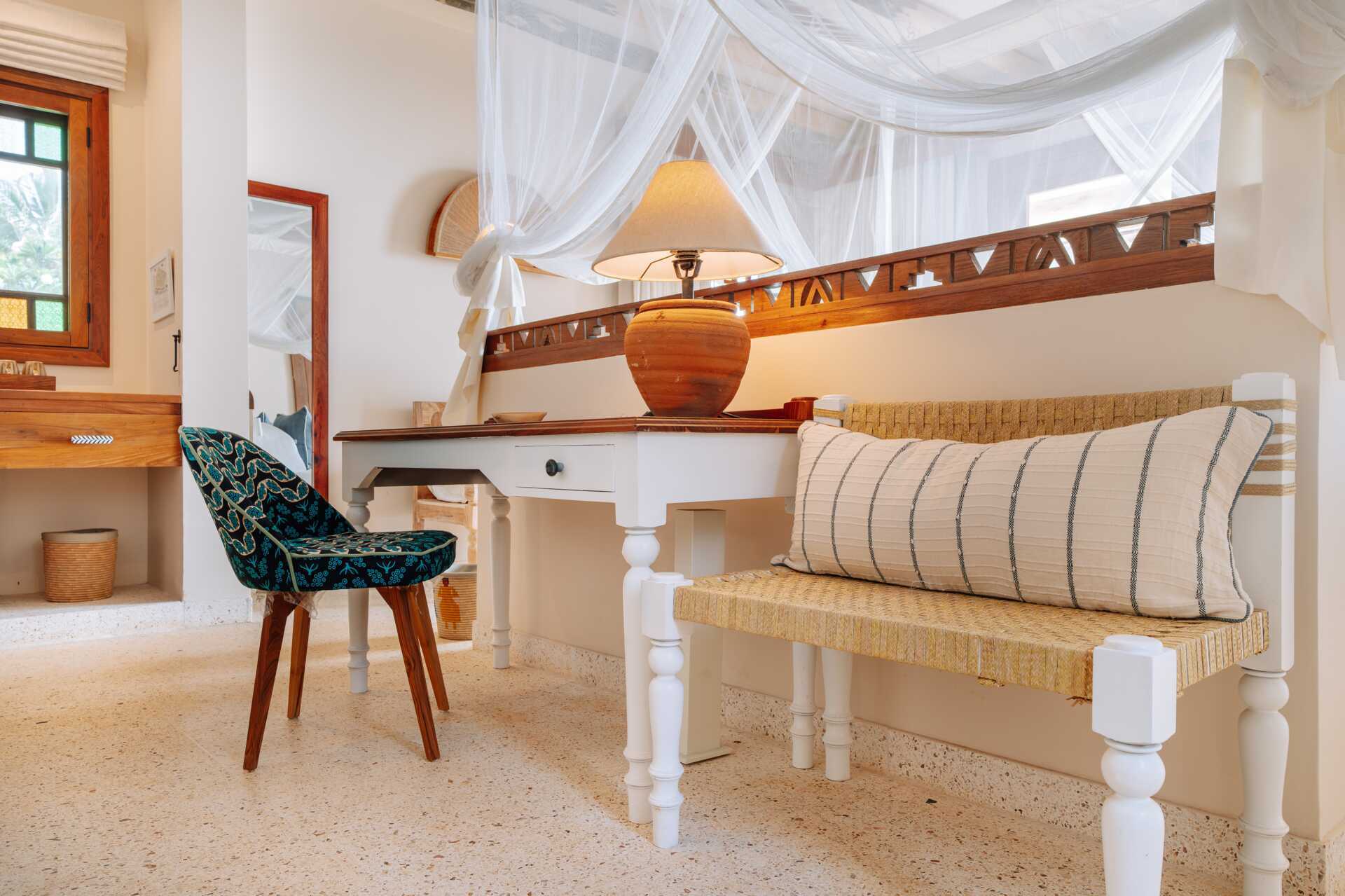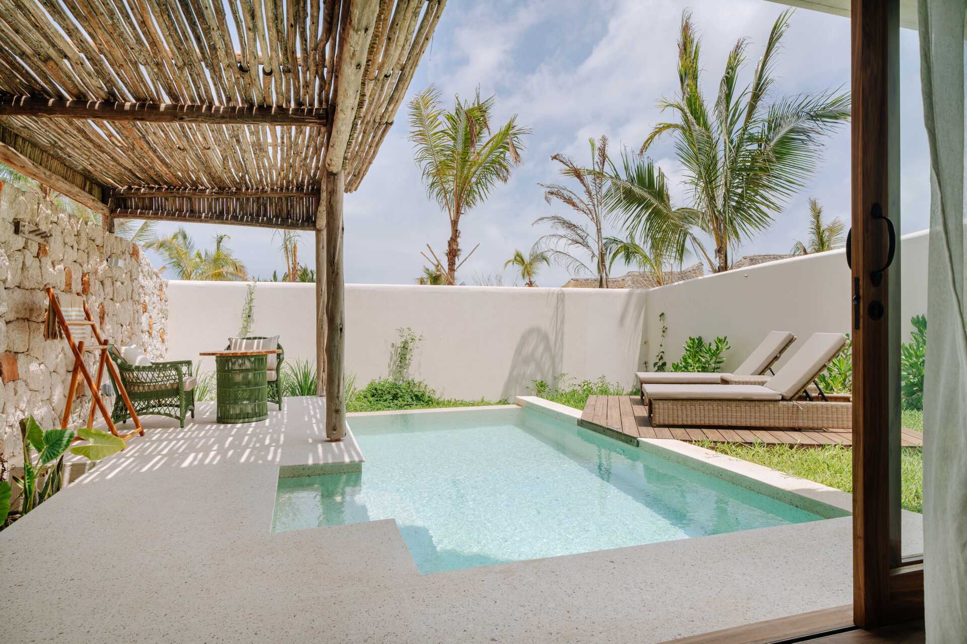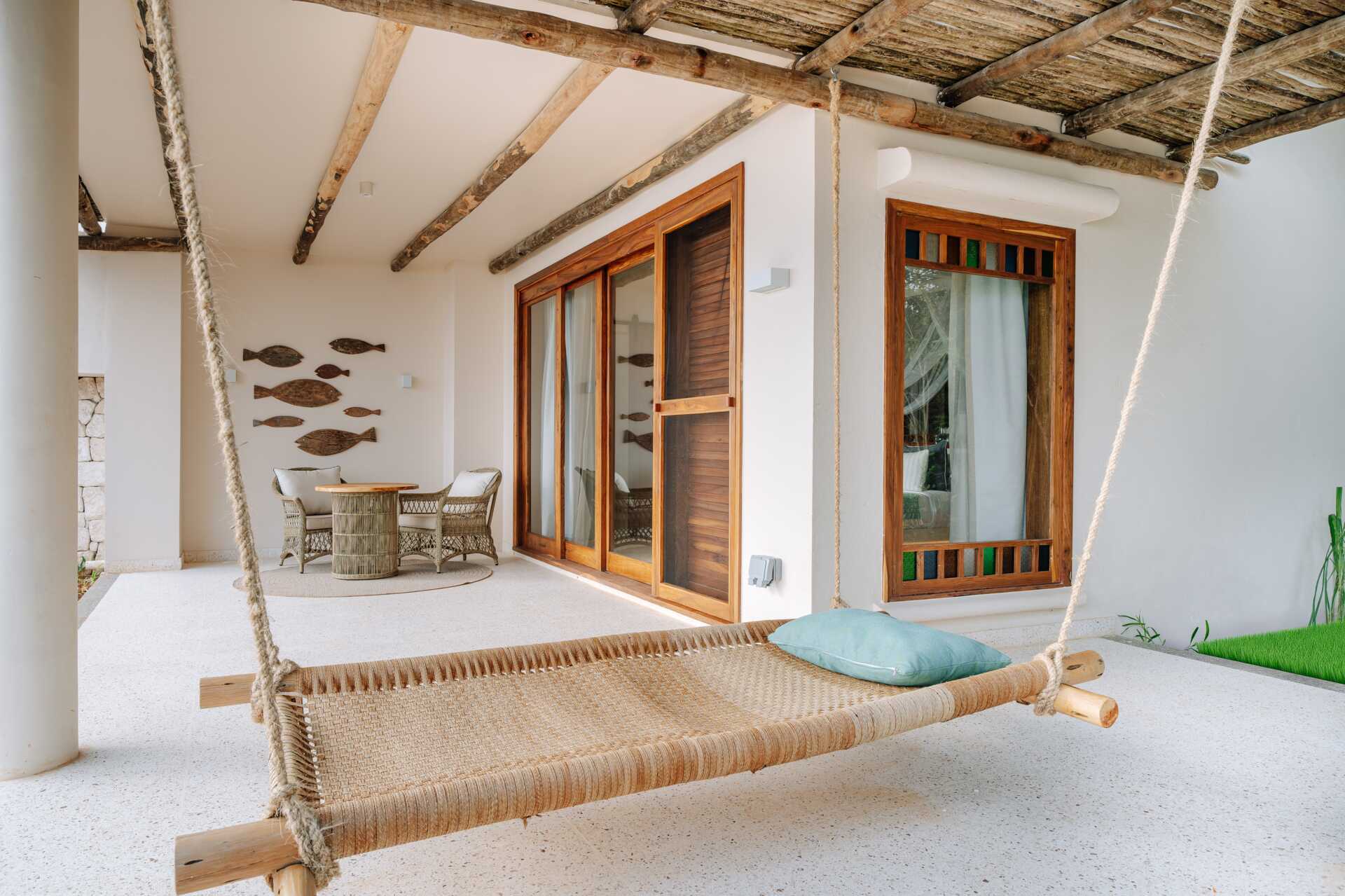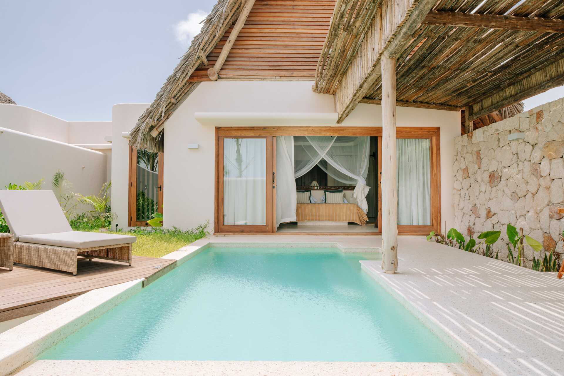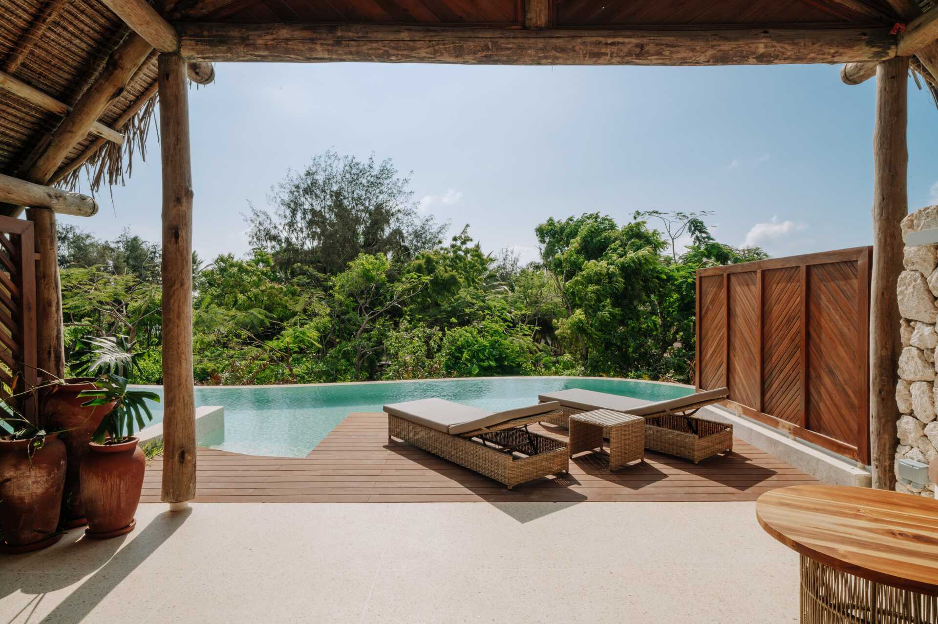 Enrumsvilla med utgång till en delad infintypool från terrassen. Rummen ligger på en ca 5 minuters promenad från stranden. På terrassen finns solstolar samt bord och stolar. En dubbelsäng (myggnät över sängen). Wifi, luftkonditionering och deponering ingår. Takfläkt. Minibar. Vattenkokare samt kaffe och te. Hårtork. Badrum med två handfat, en dusch utomhus samt en separat wc. Städning 7 ggr/vecka.