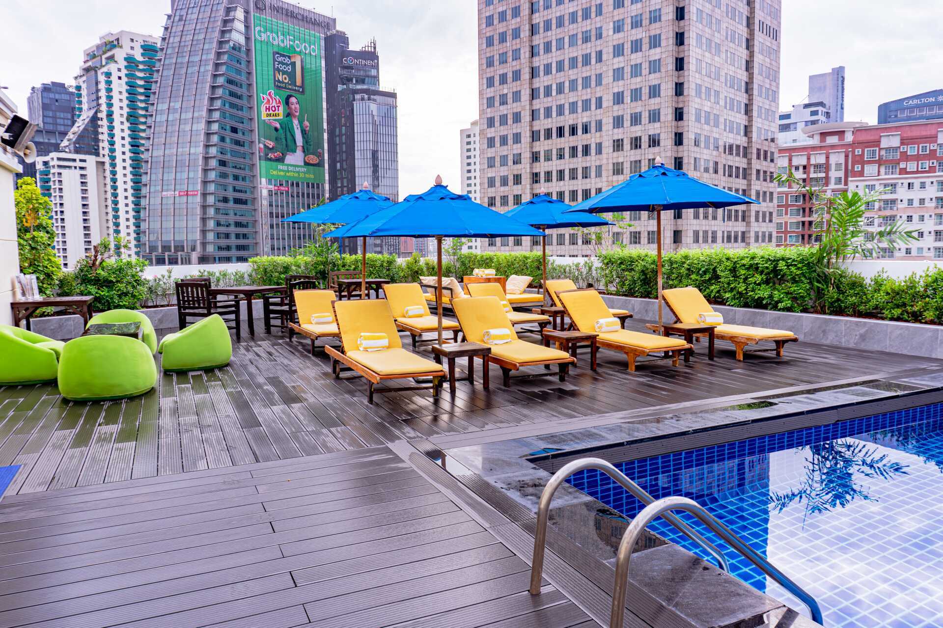 NH Bangkok Asoke har en härlig takterrass med en pool. Solstolar, parasoller och handdukar finns att låna. Från poolbaren kan du njuta av utsikten över Bangkoks siluett Hotellets restaurang, Co2 Restaurant serveras frukost, lunch och middag. På menyn finns rätter från det populära inhemska köket och välkända internationella rätter. Det går också att få sig något att dricka i restaurangen.