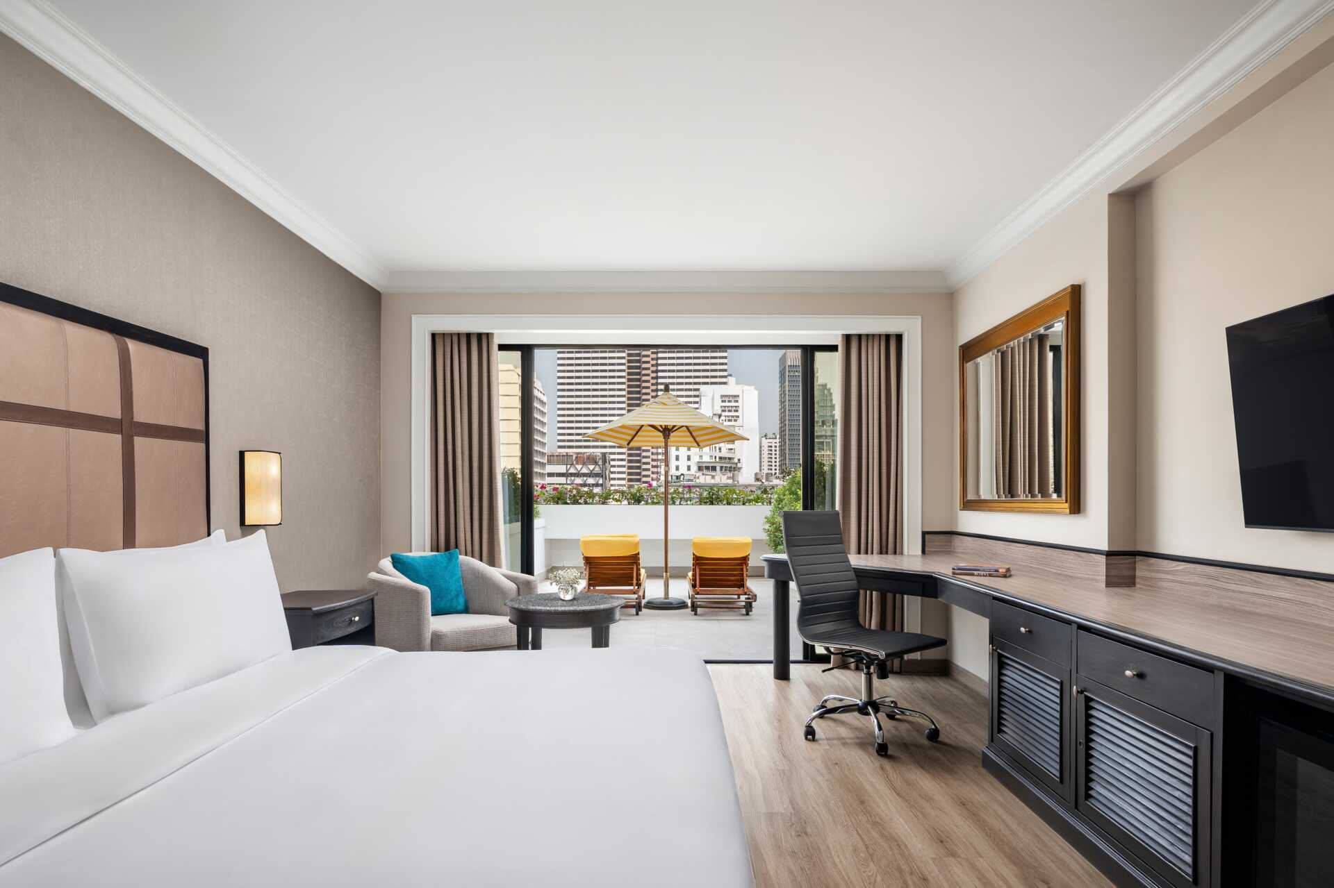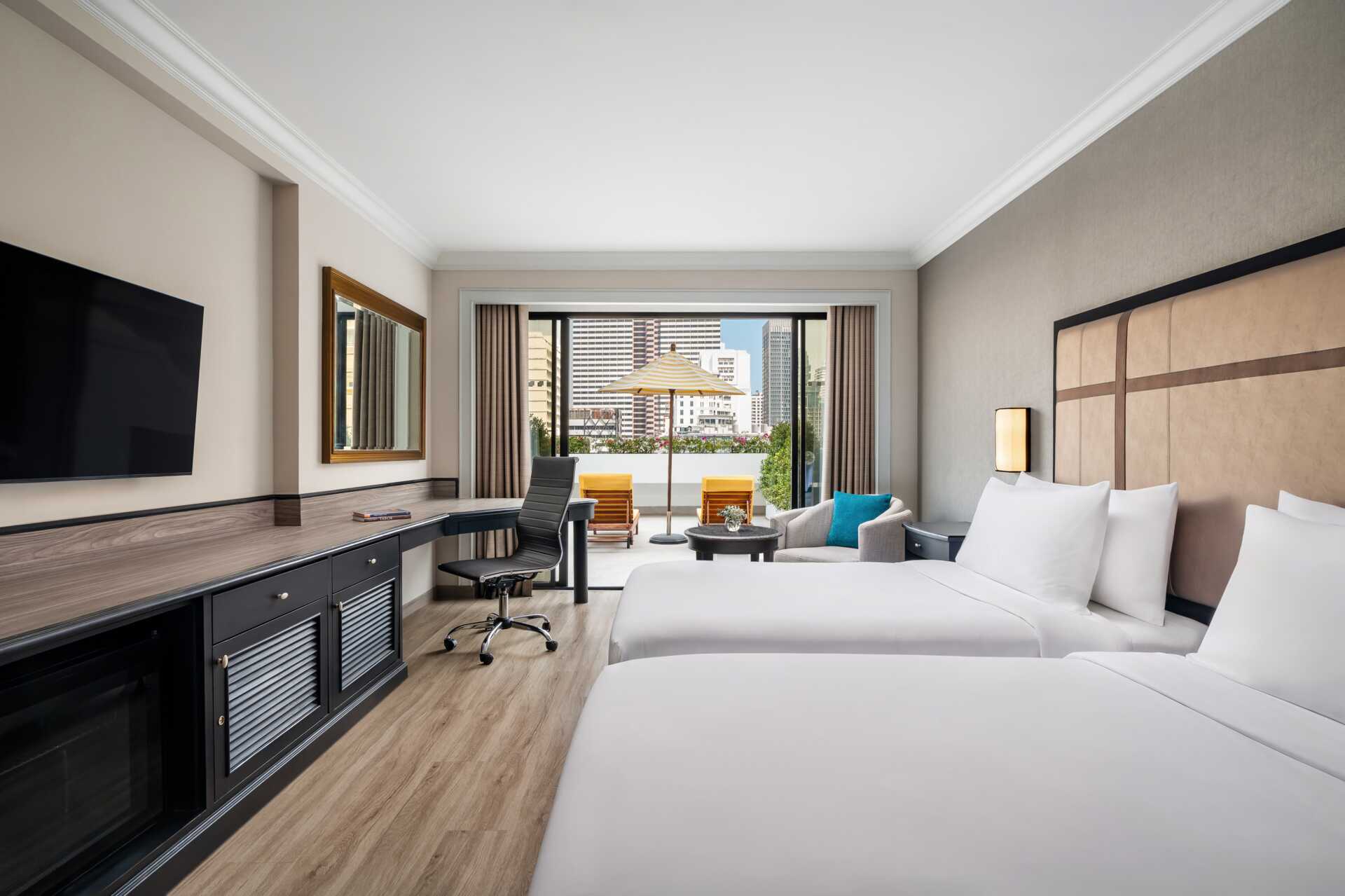 Deluxerum, utan uteplats, vissa med utsikt mot staden. Rummen med utsikt ligger på våning 17 till 25 och de andra rummen ligger på våning 9 till 16. En dubbelsäng eller två enkelsängar. Möjlighet till extrabädd i hopfällbar säng. Wifi, luftkonditionering och deponering ingår. Kylskåp. Vattenkokare samt kaffe och te. Tv med internationella kanaler. Strykjärn och strykbräda. Badrockar och tofflor. Hårtork. Badrum med badkar och wc. Städning 7 ggr/vecka.