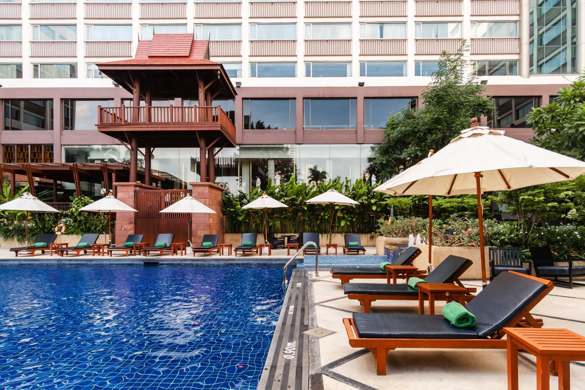 Ramada Plaza by Wyndham Bangkok Menam Riverside har ett poolområde med en pool för avkoppling mellan dina upptäcktsfärder i metropolen Bangkok. Solstolar och parasoller samt en kombinerad pool- och snackbar. Poolhanddukar ingår.