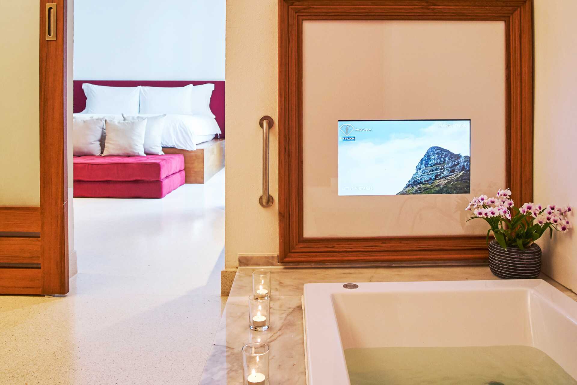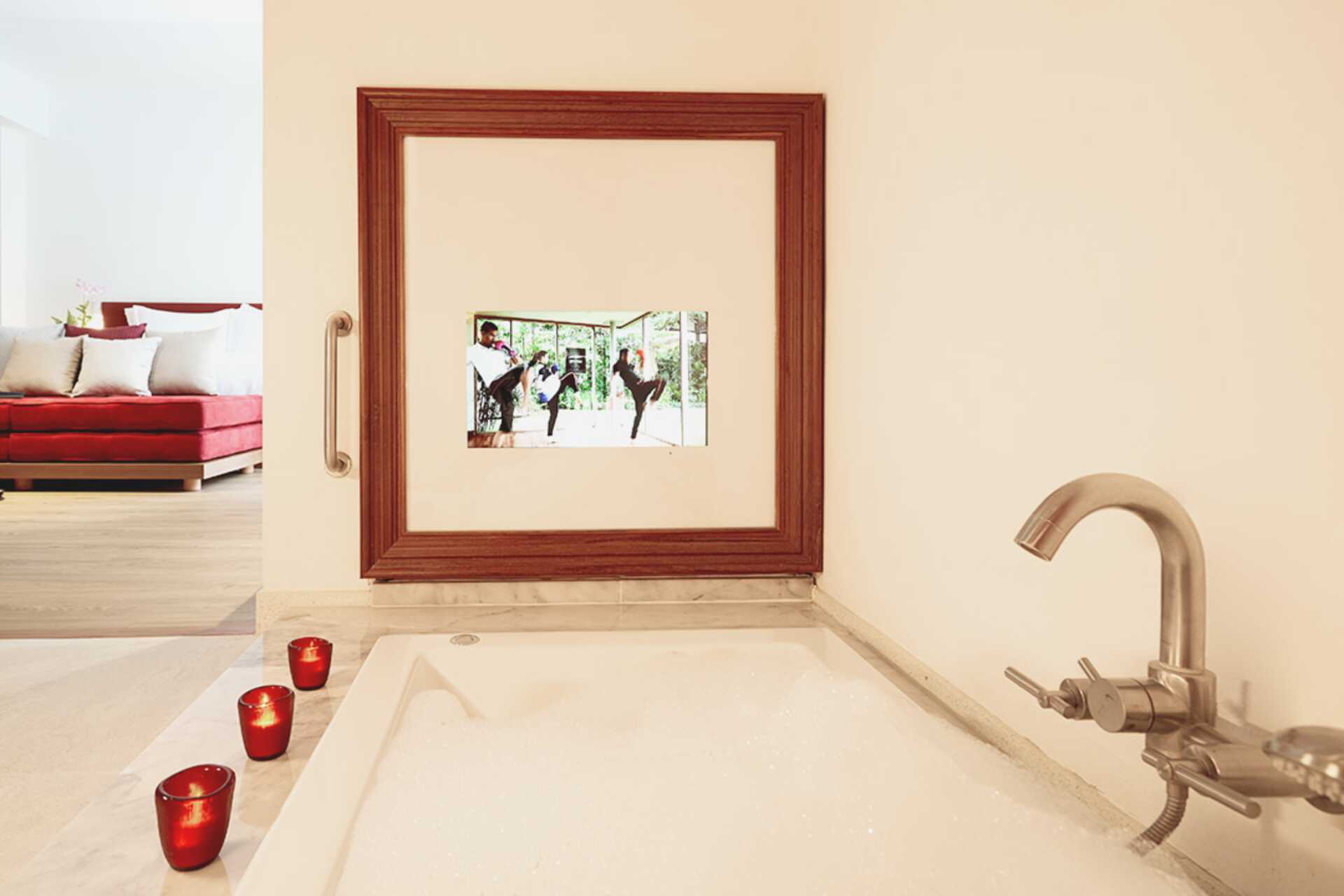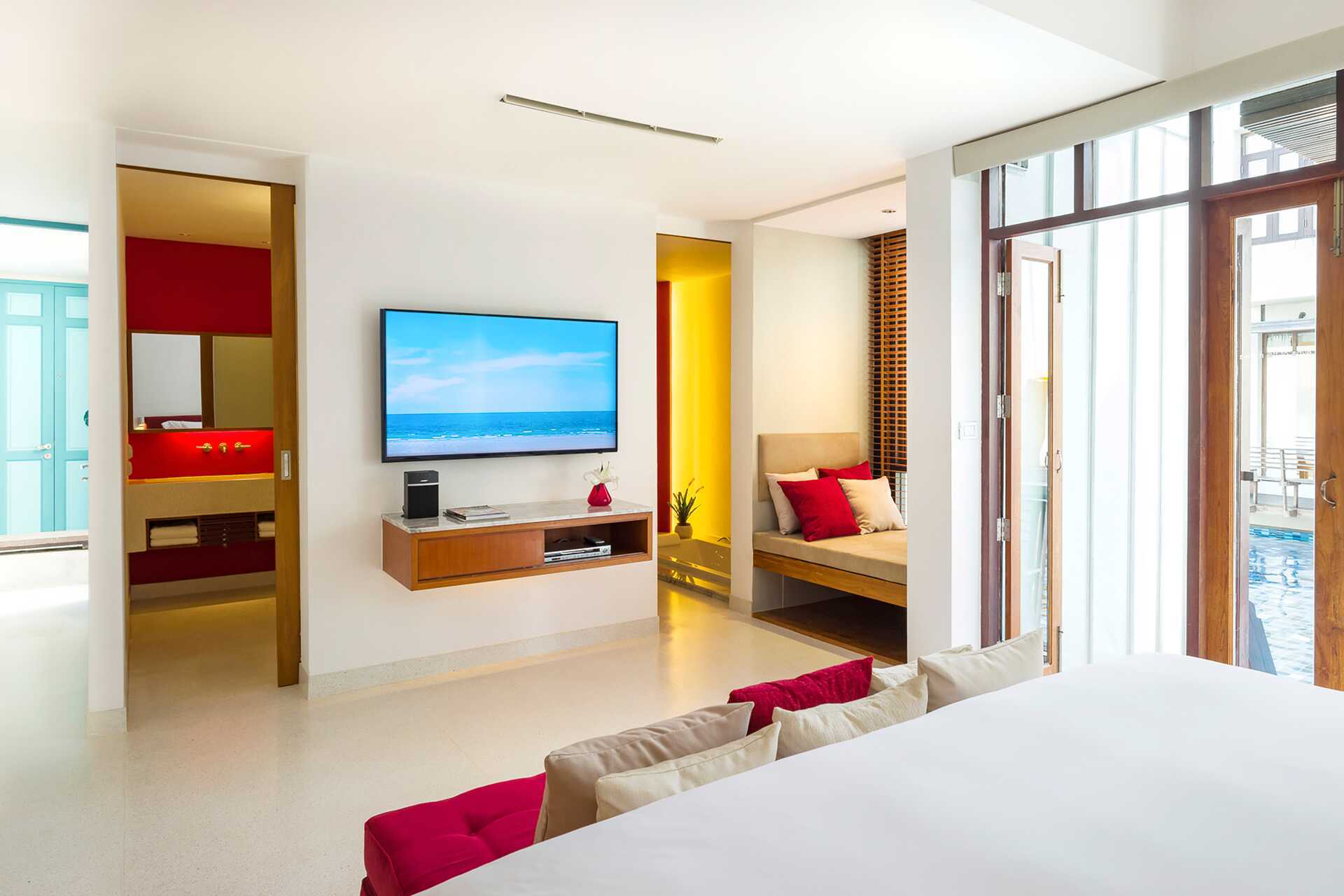 Poolsvit med uteplats till en gemensam delad pool. En dubbelsäng eller två enkelsängar. Möjlighet till extrabädd. Wifi, luftkonditionering och deponering ingår. Minibar. Kaffemaskin. Vattenkokare samt kaffe och te. Tv med internationella kanaler. Strykjärn och strykbräda. Badrockar och tofflor. Hårtork. Badrum med jacuzzi, separat dusch samt wc. Städning 7 ggr/vecka.