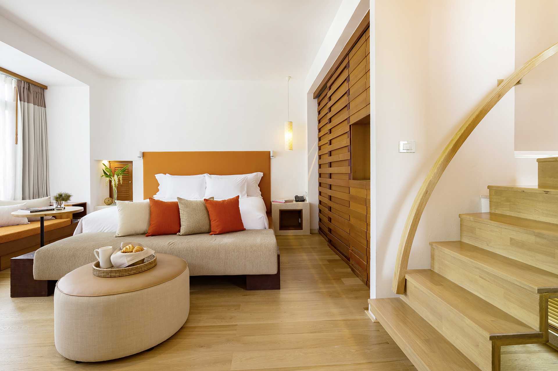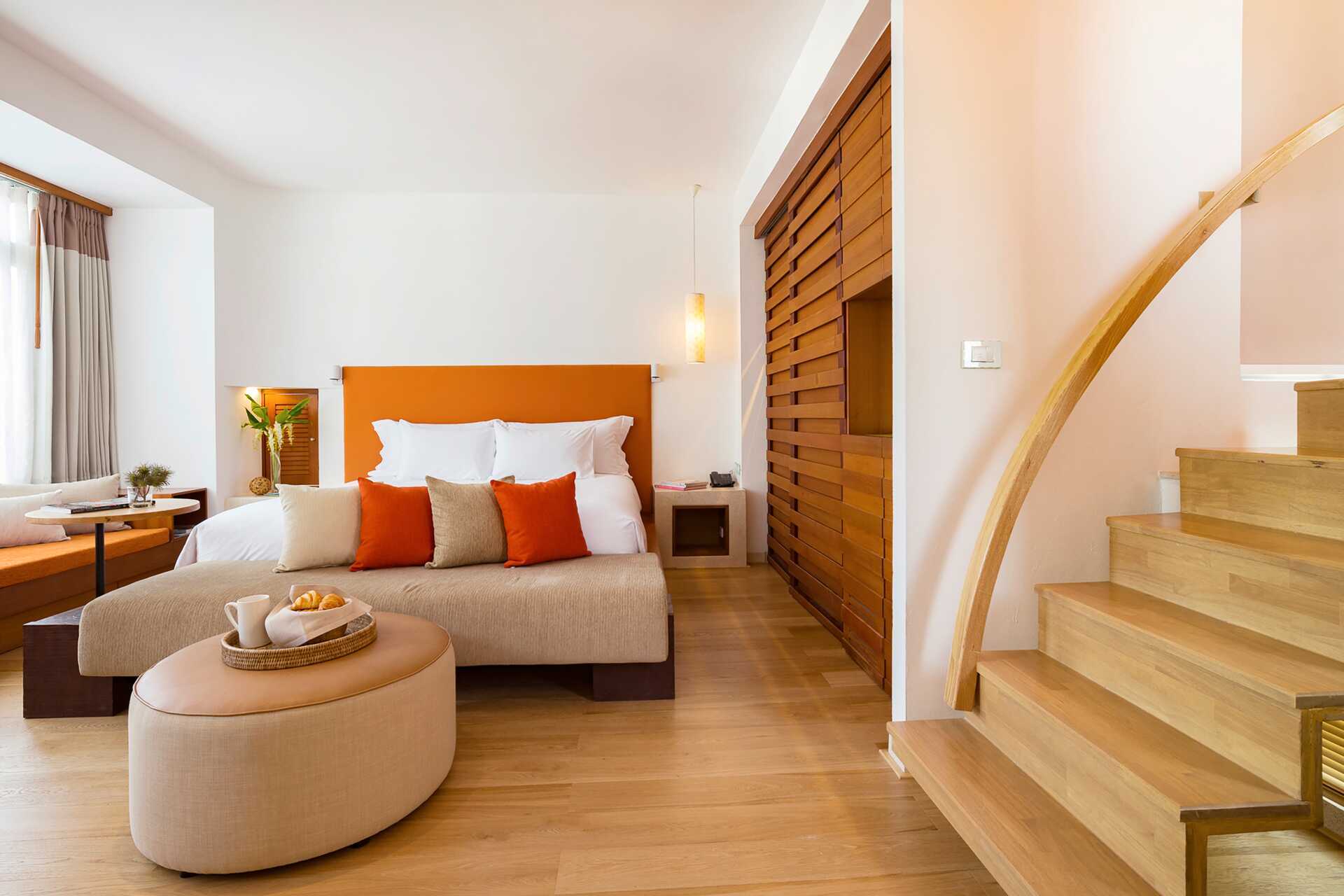 Superiorsvit med takterrass och begränsad havsutsikt. Till takterrassen är det en trappa där det finns en med jacuzzi, dusch och en stor dagbädd. Mellan byggnaderna där sviterna ligger finns en trappa som leder ner till den gemensamma poolen. En dubbelsäng. Minibar. Kaffemaskin. Vattenkokare samt kaffe och te. Tv med internationella kanaler. Strykjärn och strykbräda. Badrockar och tofflor. Hårtork. Badrum med badkar och wc. Städning 7 ggr/vecka.
