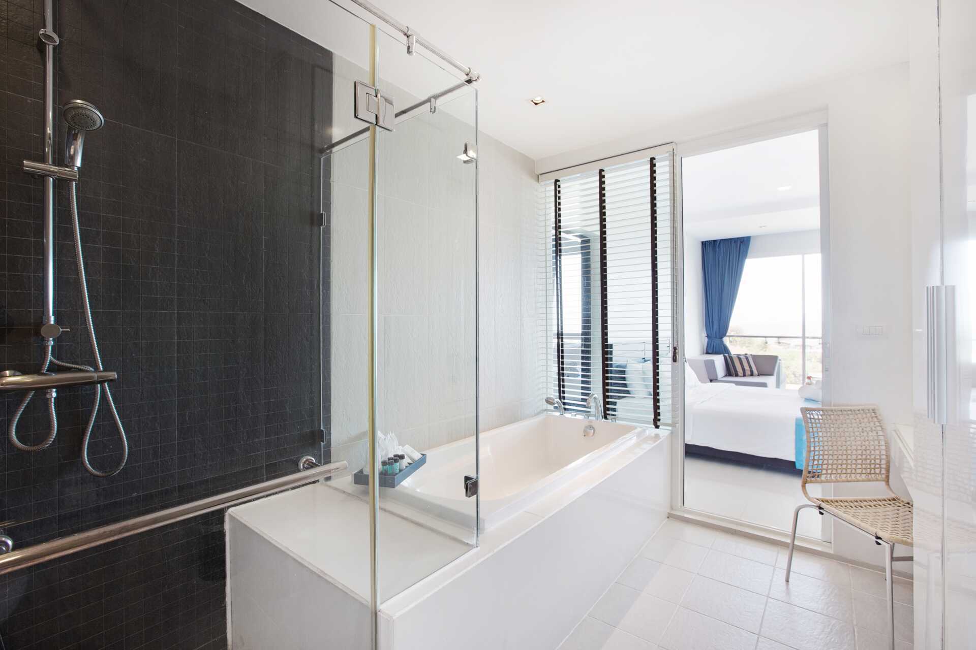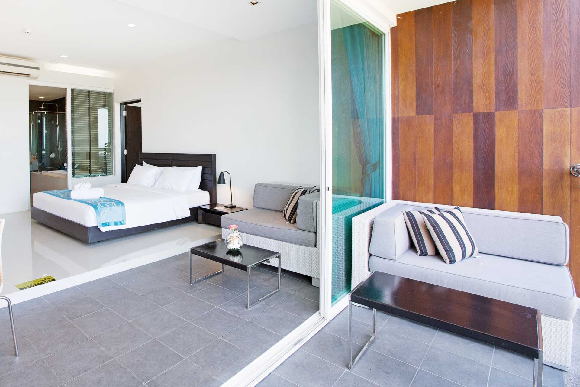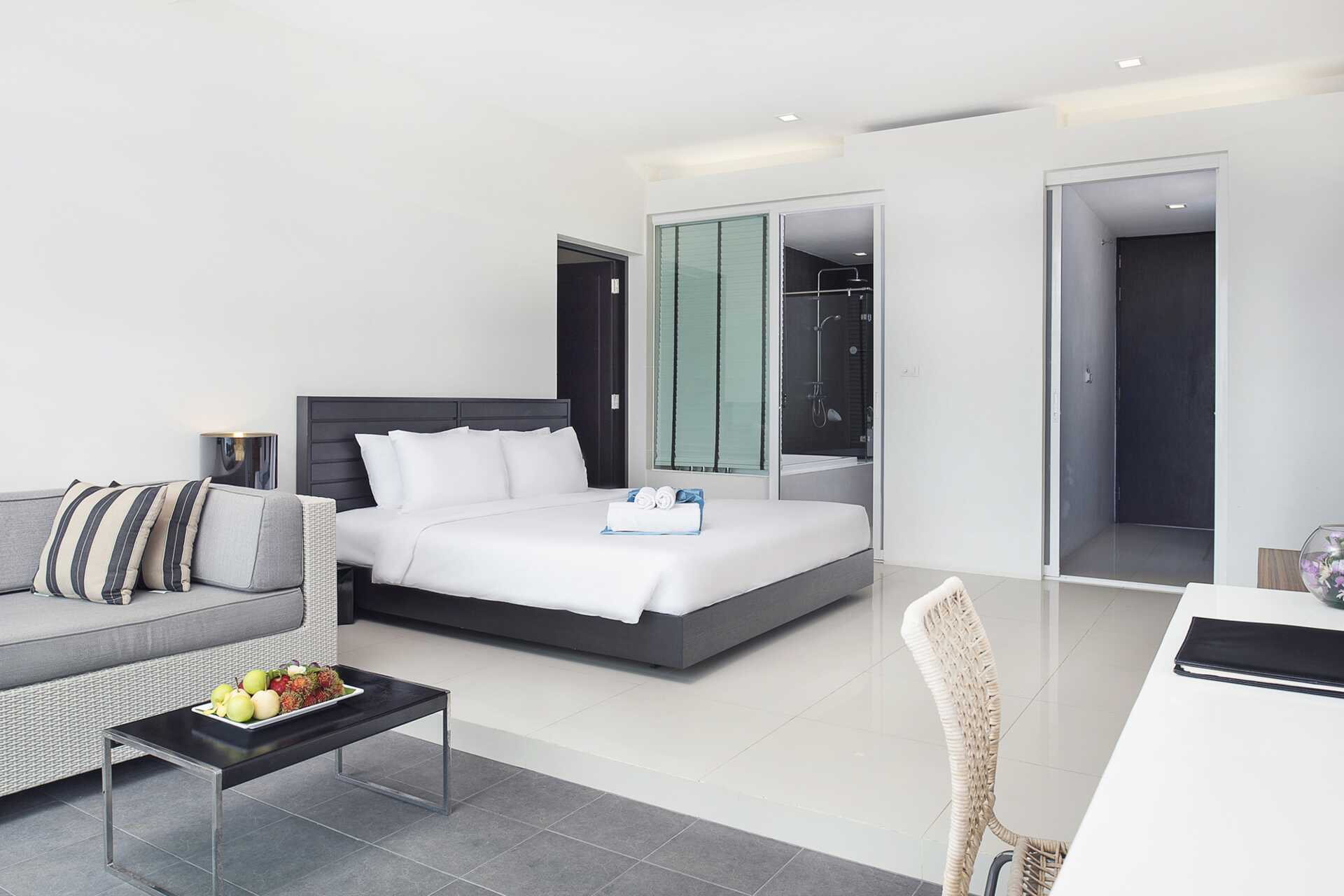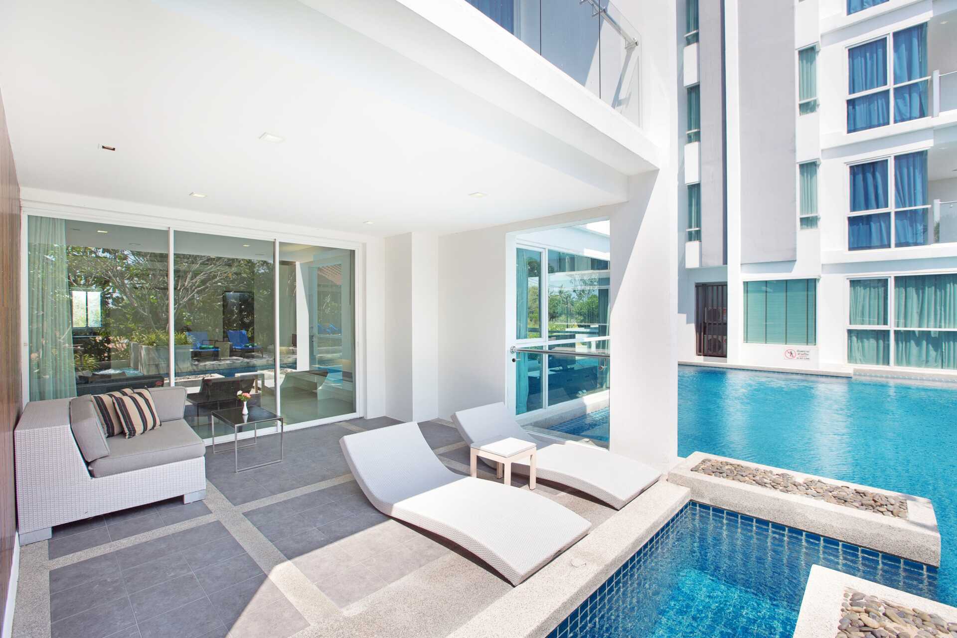 Tvårumssvit med poolaccess från uteplatsen. Sviten består av två sovrum med två dubbelsängar i varje sovrum, ett vardagsrum och en uteplats med solstolar, bord och fåtöljer. Trappsteg ner i poolen. Wifi, luftkonditionering och deponering ingår. Kylskåp - två flaskor med vatten ingår per dag. Vattenkokare samt kaffe och te. Tv med internationella kanaler. Badrockar och tofflor. Hårtork. Två badrum med badkar, dusch samt wc. Städning 7 ggr/vecka.