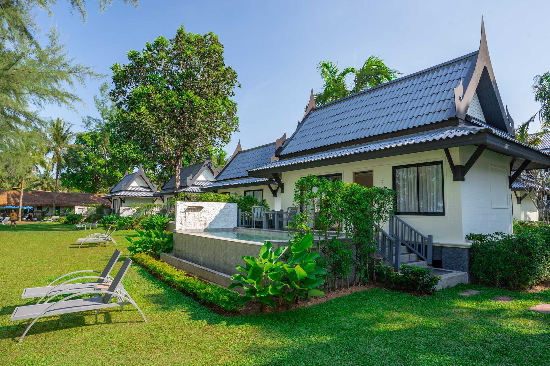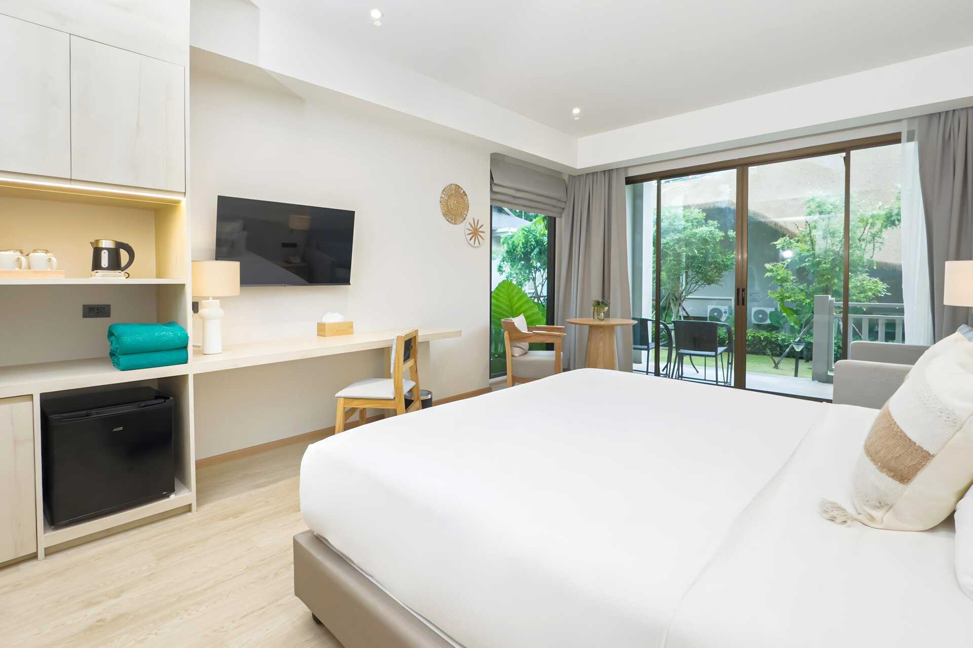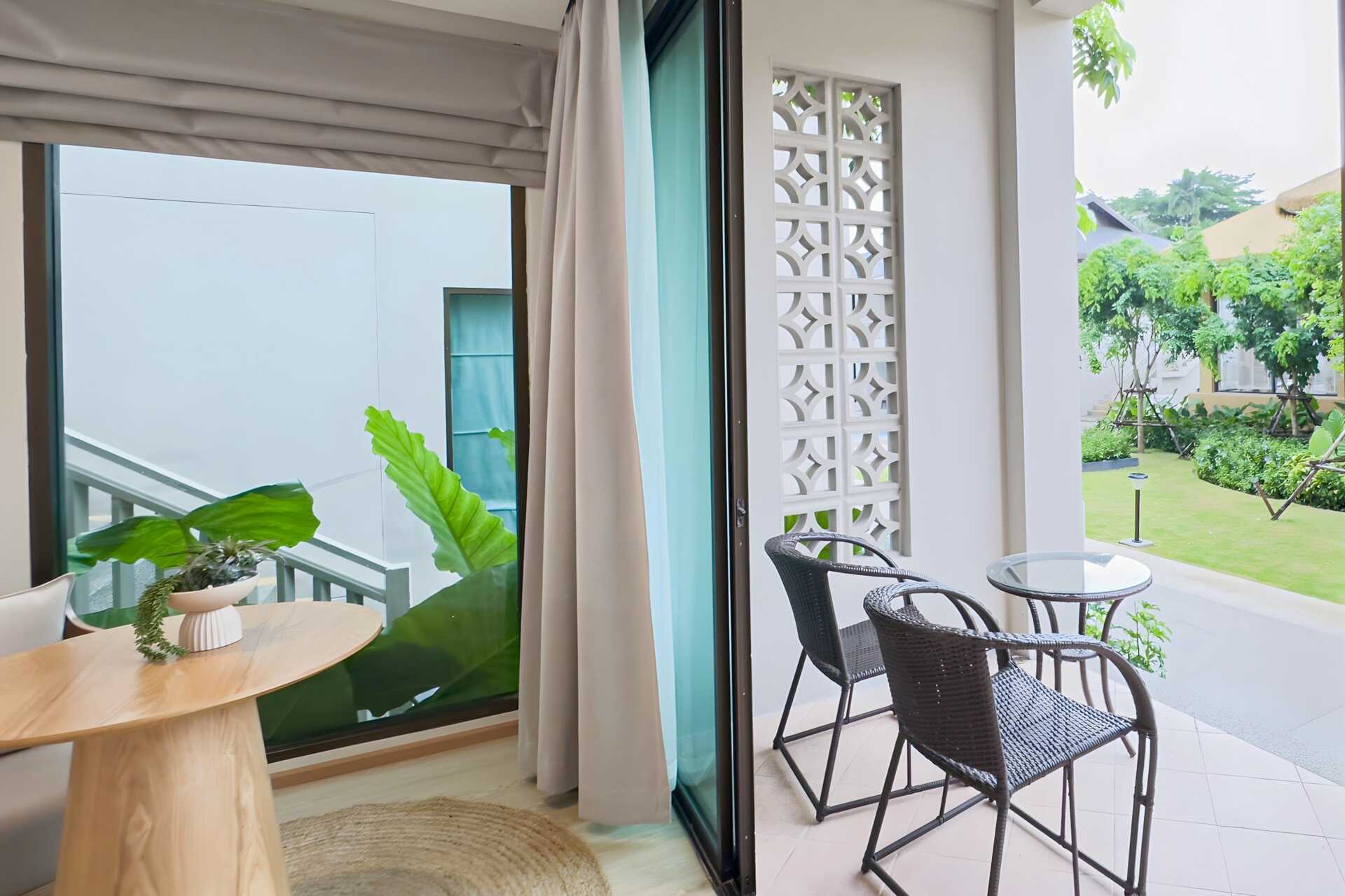 Enrumsvilla med markterrass med bord och stolar. Villorna ligger i hotellets grönskande trädgård. En dubbelsäng eller två enkelsängar. Möjlighet till extrabädd i bäddsoffa. Wifi, luftkonditionering och deponering ingår. Kylskåp. Vattenkokare samt kaffe och te. Tv med internationella kanaler. Hårtork. Badrock och tofflor. Badrum med badkar, separat dusch utomhus samt wc. Städning 7 ggr/vecka. Barn under två år räknas in i max antal personer i rummet.