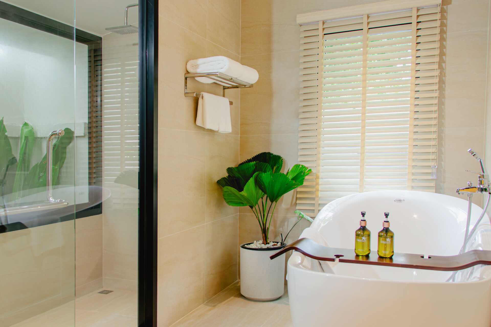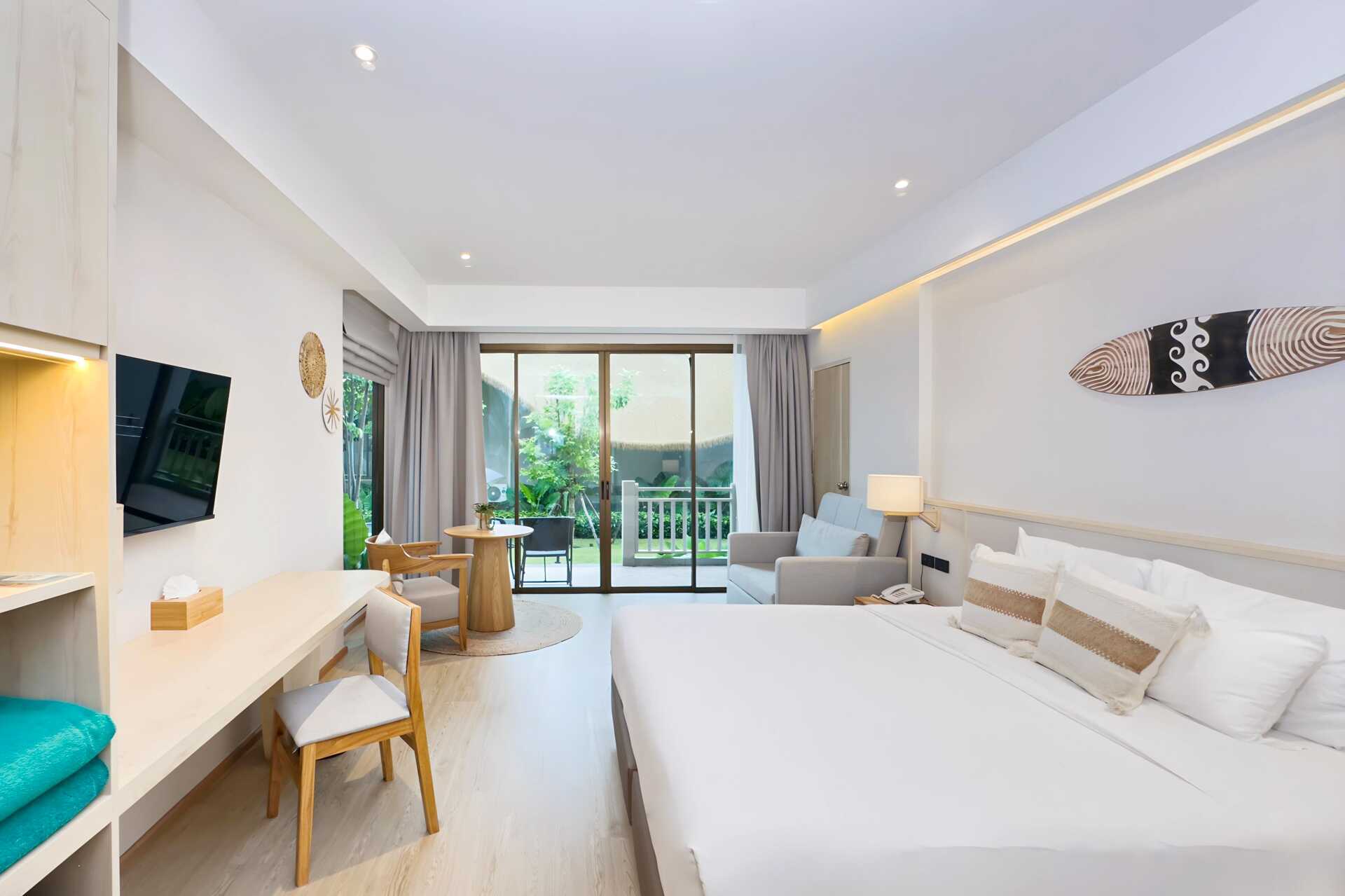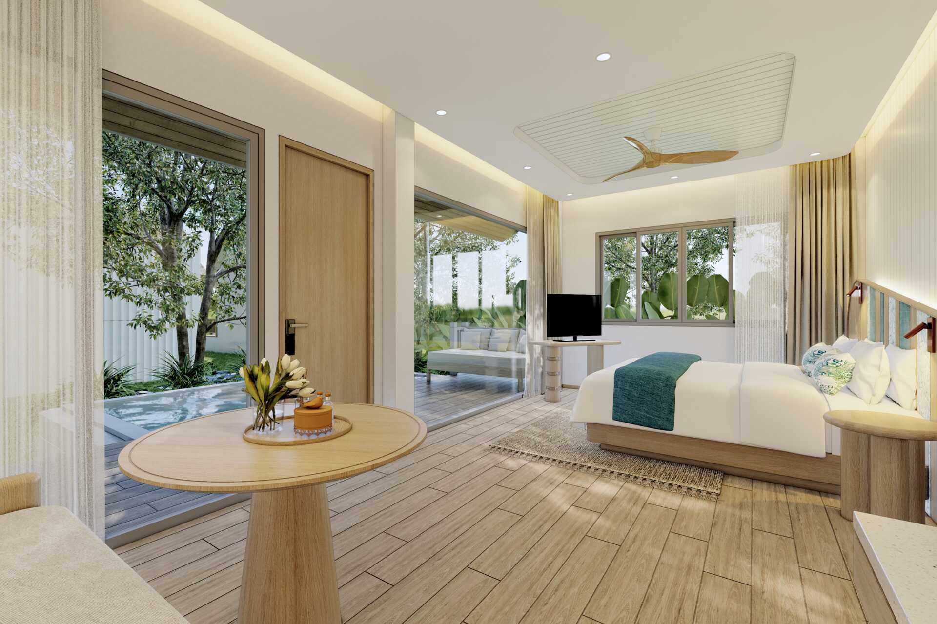 Enrumsvilla med markterrass med bord och stolar. Villorna ligger i hotellets grönskande trädgård. En dubbelsäng eller två enkelsängar. Möjlighet till extrabädd i bäddsoffa. Wifi, luftkonditionering och deponering ingår. Kylskåp. Vattenkokare samt kaffe och te. Tv med internationella kanaler. Hårtork. Badrock och tofflor. Badrum med badkar, separat dusch utomhus samt wc. Städning 7 ggr/vecka. Barn under två år räknas in i max antal personer i rummet.
