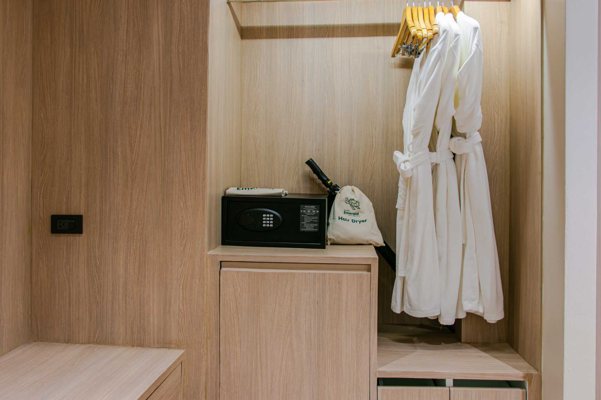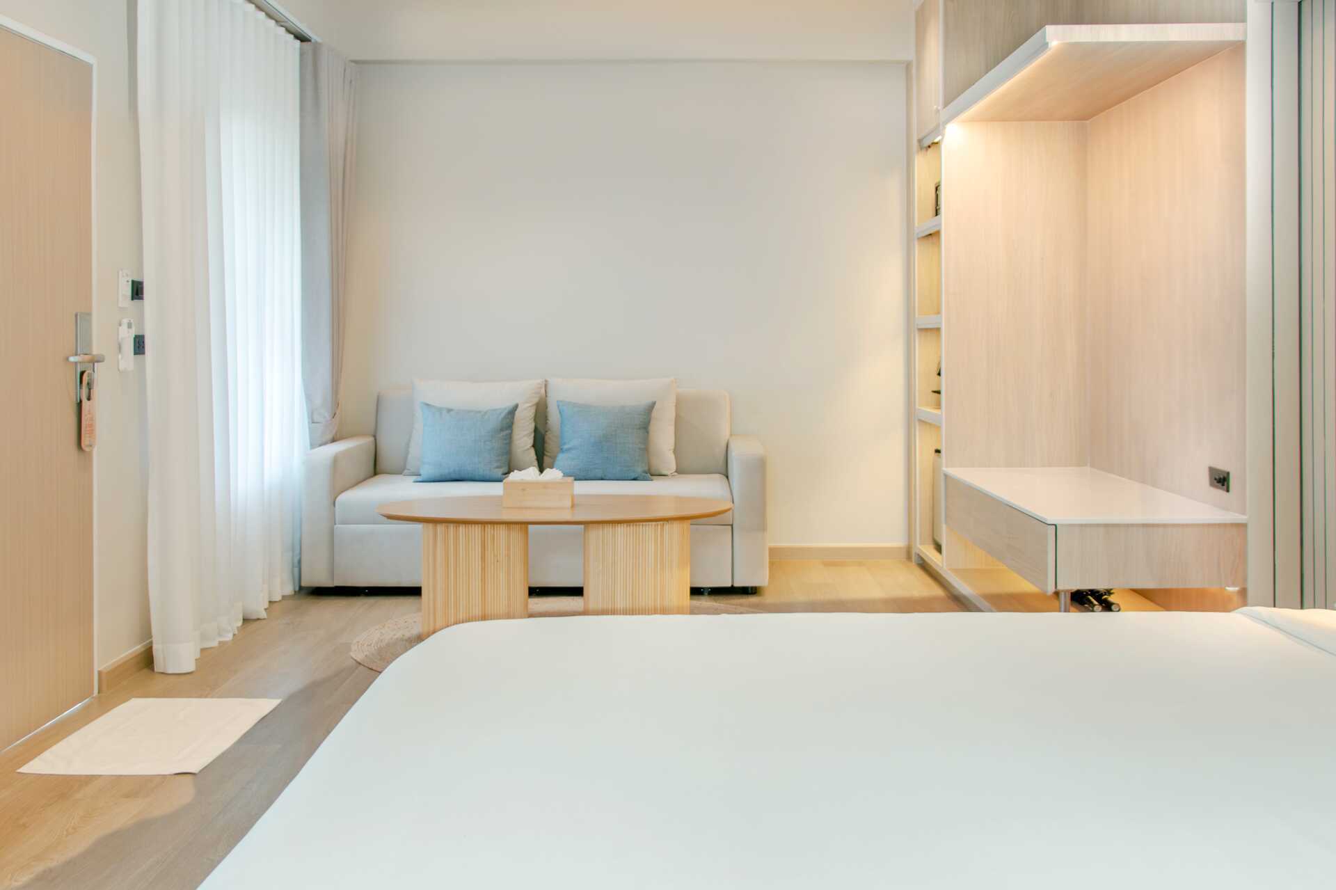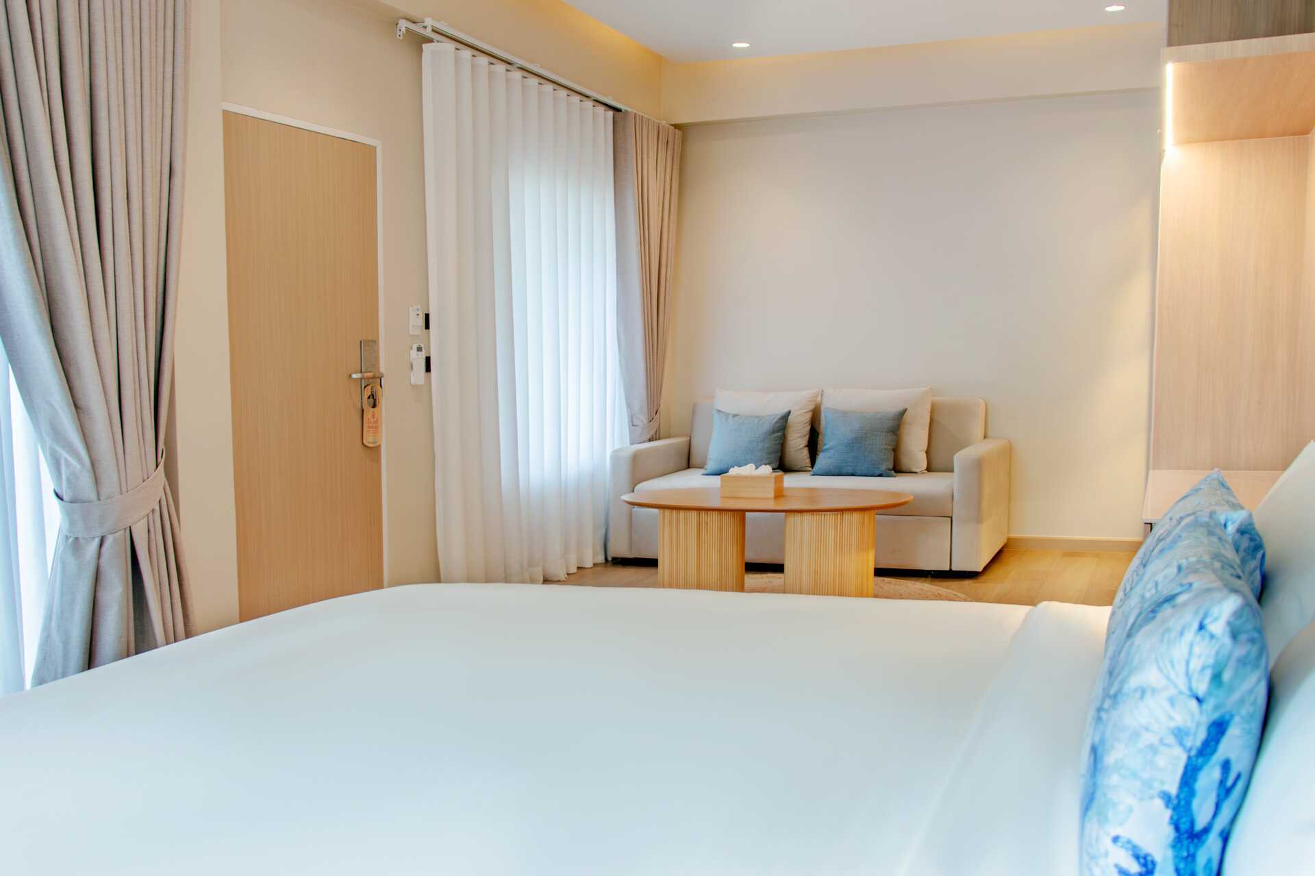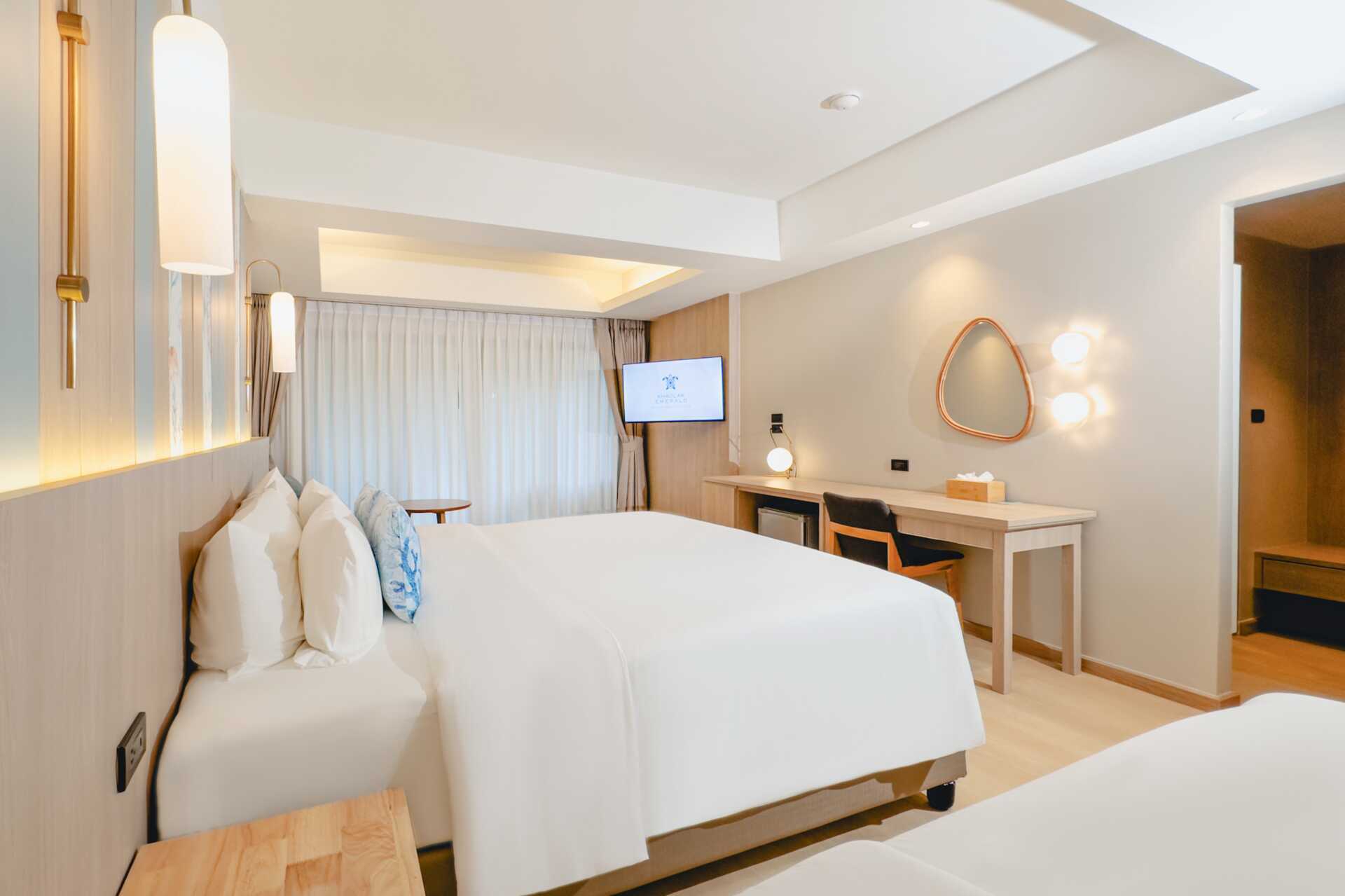 Familjerum med balkong. En dubbelsäng eller två enkelsängar. Möjlighet till extrabädd i en enkelsäng eller i bäddsoffa. Fjärde person sover i befintliga sängar eller i bäddsoffa. Wifi, luftkonditionering och deponering ingår. Kylskåp. Vattenkokare samt kaffe och te. Tv med internationella kanaler. Hårtork. Badrock och tofflor. Badrum med badkar och wc. Städning 7 ggr/vecka. Barn under två år räknas in i max antal personer i rummet.