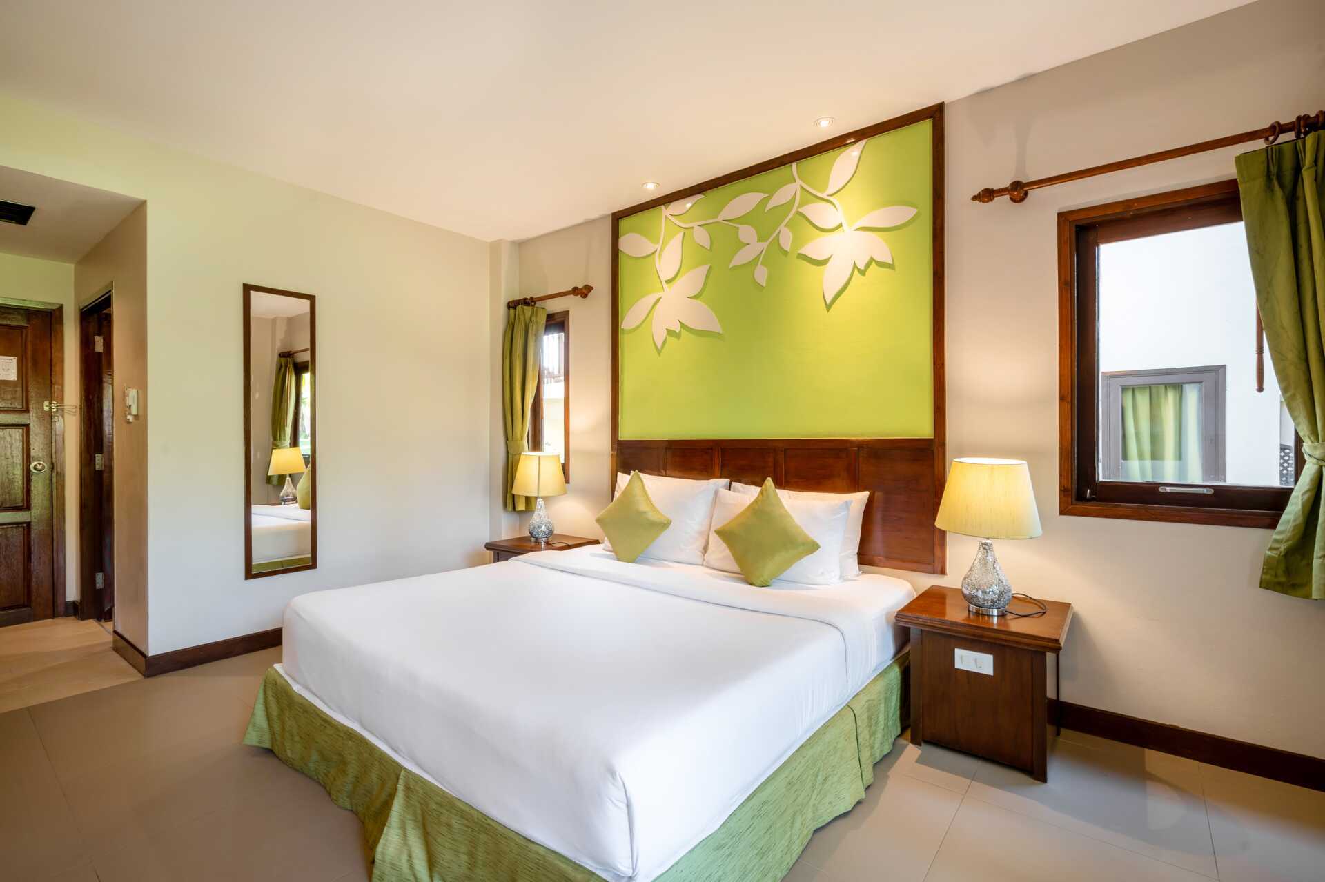 Dubbelrum med balkong eller terrass med trädgårdsutsikt. En dubbelsäng eller två enkelsängar. Möjlighet till extrabädd i bäddbar soffa, i hopvikbar säng eller i befintliga sängar. Wifi, luftkonditionering och deponering ingår. Kylskåp. Vattenkokare samt kaffe och te. Tv med internationella kanaler. Paraply. Hårtork. Badrum med dusch och wc. Städning 7 ggr/vecka.