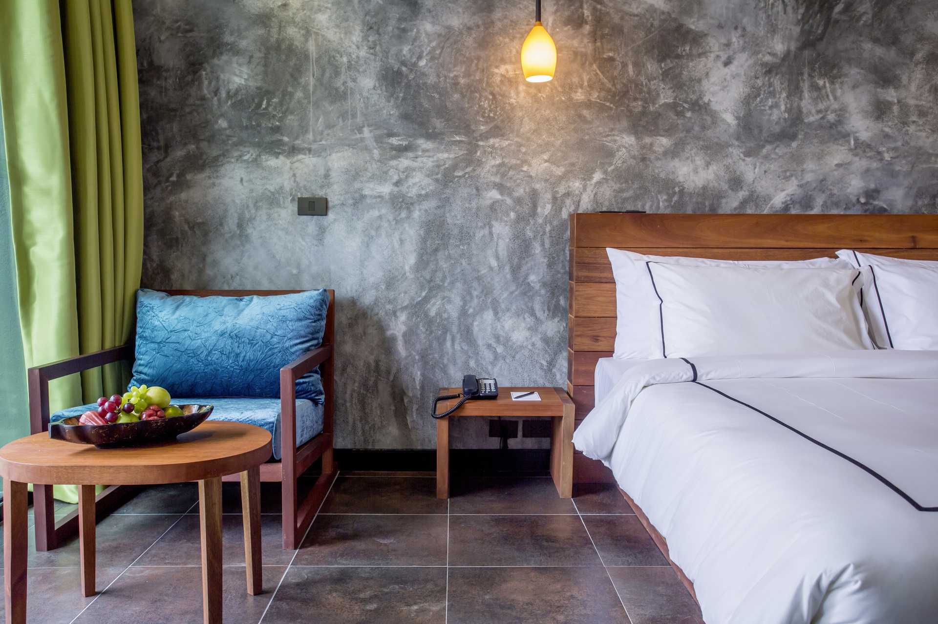 Dubbelrum med balkong eller terrass. Rummen ligger i hotellets huvudbyggnad Bay Wing med fem våningar. En dubbelsäng. Wifi, luftkonditionering och deponering ingår. Kylskåp. Vattenkokare samt kaffe och te. Tv med internationella kanaler. Paraply. Badrockar och tofflor. Hårtork. Öppen planlösning till dusch och wc. Frostad glasvägg mellan rummet och badrummet. Städning 7 ggr/vecka.