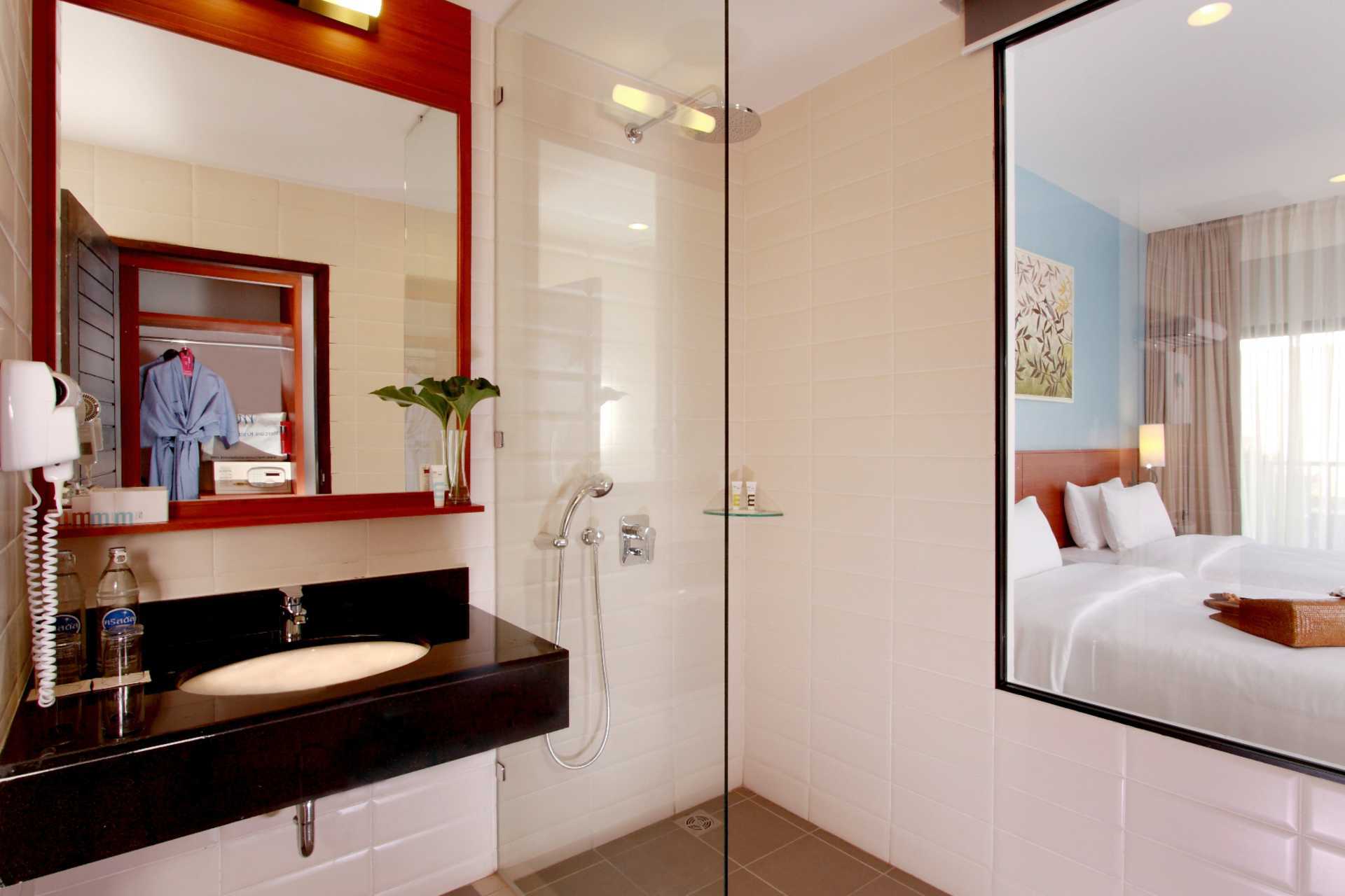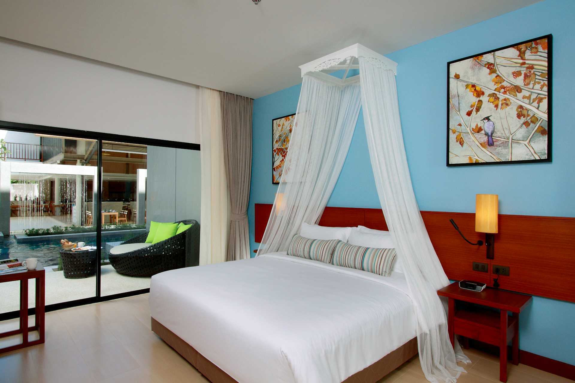 Deluxerum med poolaccess från terrassen ner till en gemensam pool. På terrassen finns en loungestol. En dubbelsäng och en enkelsäng. Möjlighet till extrabädd i befintliga sängar. Wifi, luftkonditionering och deponering ingår. Minibar. Vattenkokare samt kaffe och te. Tv med internationella kanaler. Strykjärn och strykbräda. Badrockar och tofflor. Pool- och strandhanddukar finns på rummet vid ankomst. Hårtork. Badrum med badkar med dusch samt wc. Städning 7 ggr/vecka.