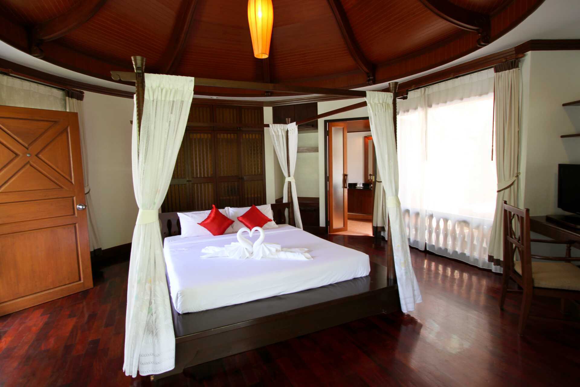 Större dubbelrum i bungalower med markterrass och jacuzzi. En dubbelsäng och en enkelsäng. Möjlighet till extrabädd i befintliga sängar. Wifi, luftkonditionering och deponering ingår. Minibar. Vattenkokare samt kaffe och te. Tv med internationella kanaler. Hårtork. Badrum med jacuzzi, dusch och wc. Städning 7 ggr/vecka.