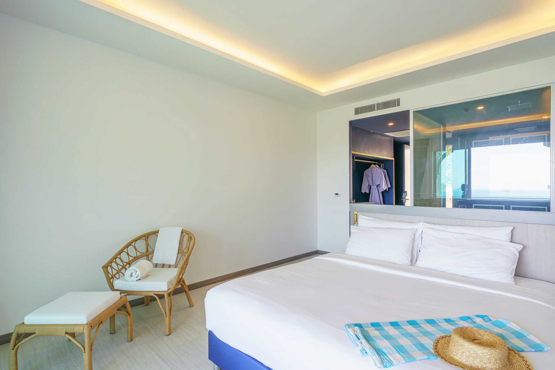 Deluxerum plus med balkong som vetter mot havet. Rummen ligger i hotellets nya byggnad. Åldersgränsen för att bo i rummet är 16 år. En dubbelsäng och en härlig dagbädd för lata stunder. Wifi, luftkonditionering och deponering ingår. Minibar. Vattenkokare samt kaffe och te. Tv med internationella kanaler. Badrockar och tofflor. Hårtork. Badrum med dusch och wc. Städning 7 ggr/vecka.