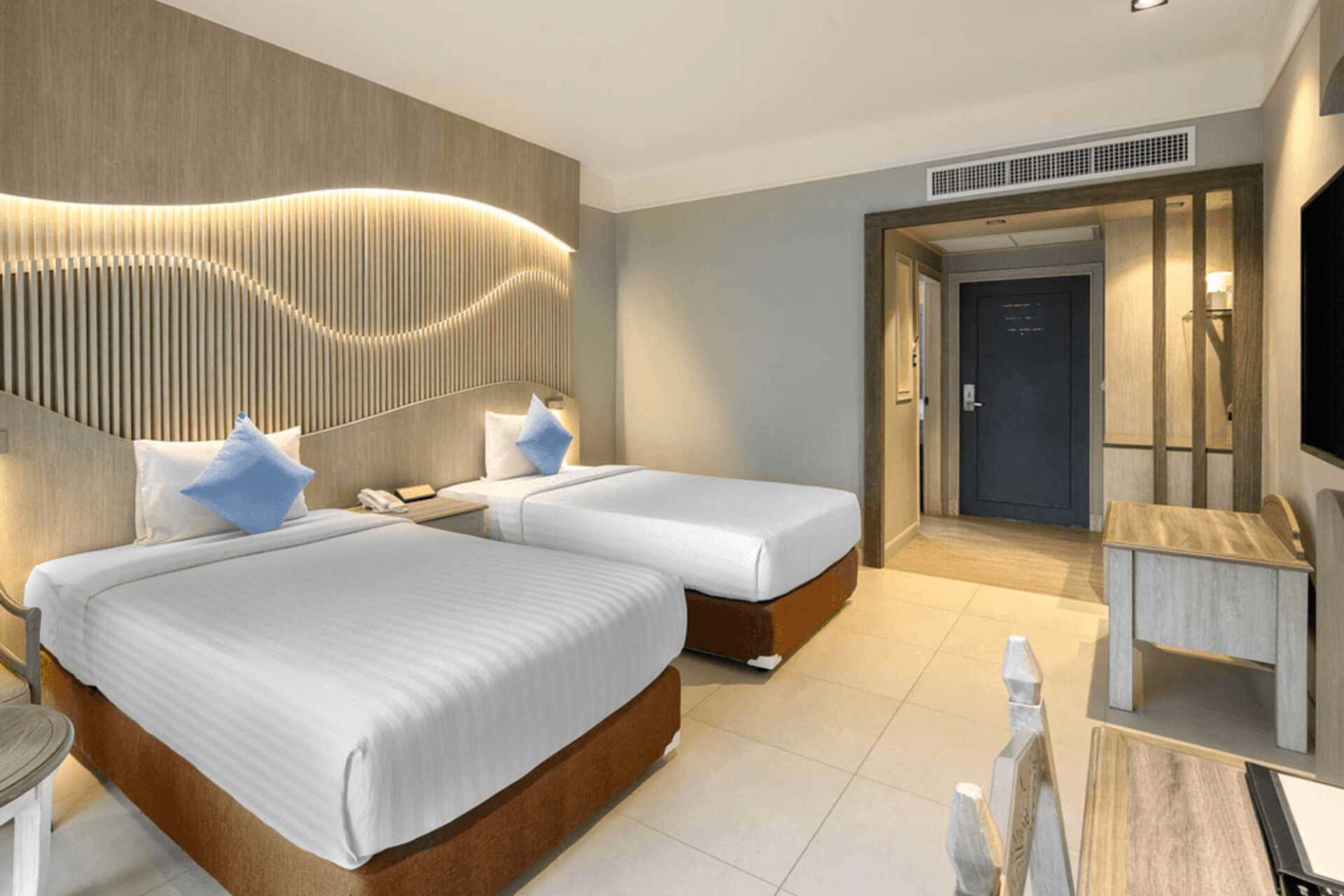 Superiorrum med balkong eller terrass, vissa med poolutsikt. En dubbelsäng eller två enkelsängar. Wifi, luftkonditionering och deponering ingår. Minibar. Vattenkokare samt kaffe och te. Tv med internationella kanaler. Badrockar och tofflor. Hårtork. Badrum med badkar och wc. Städning 7 ggr/vecka.