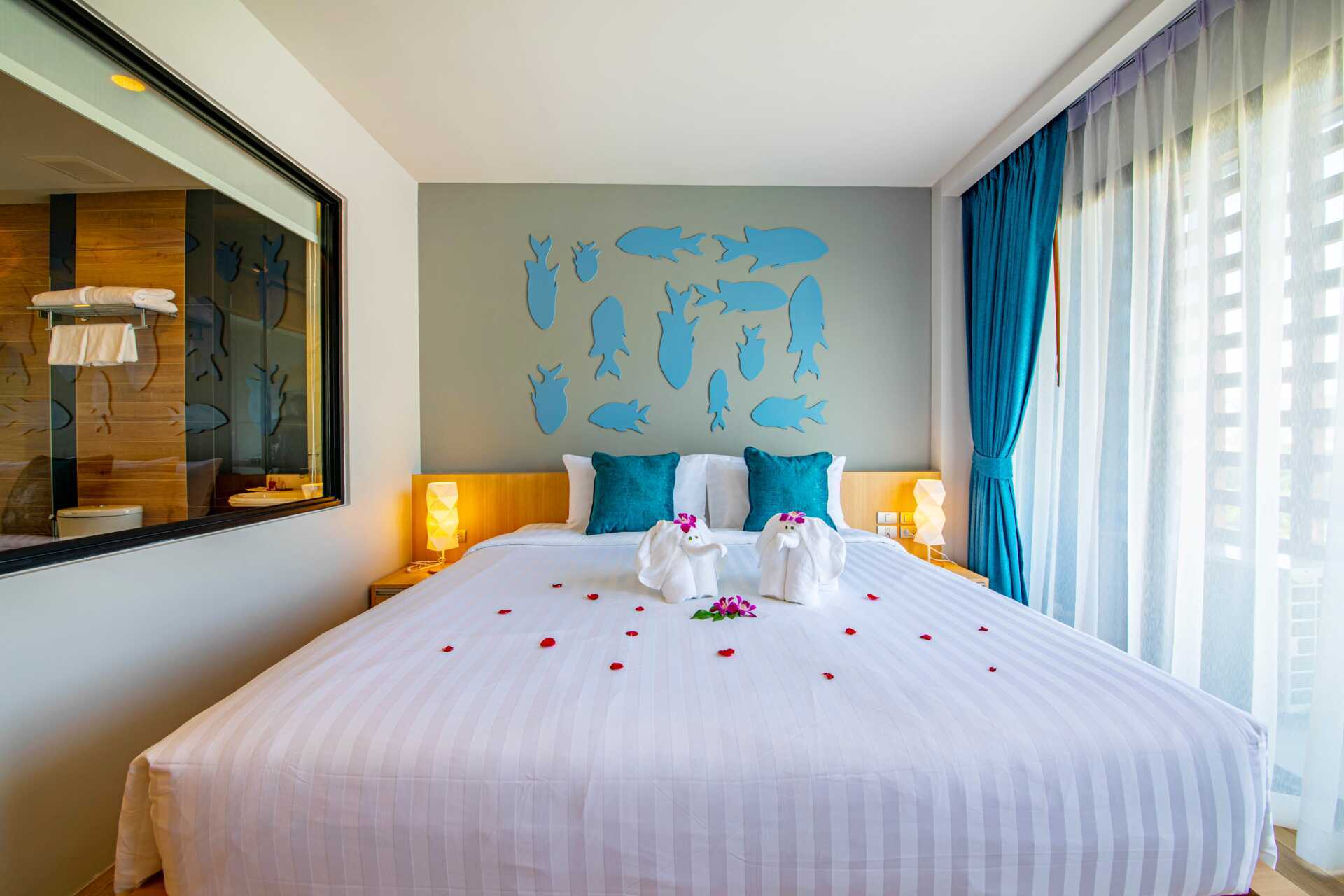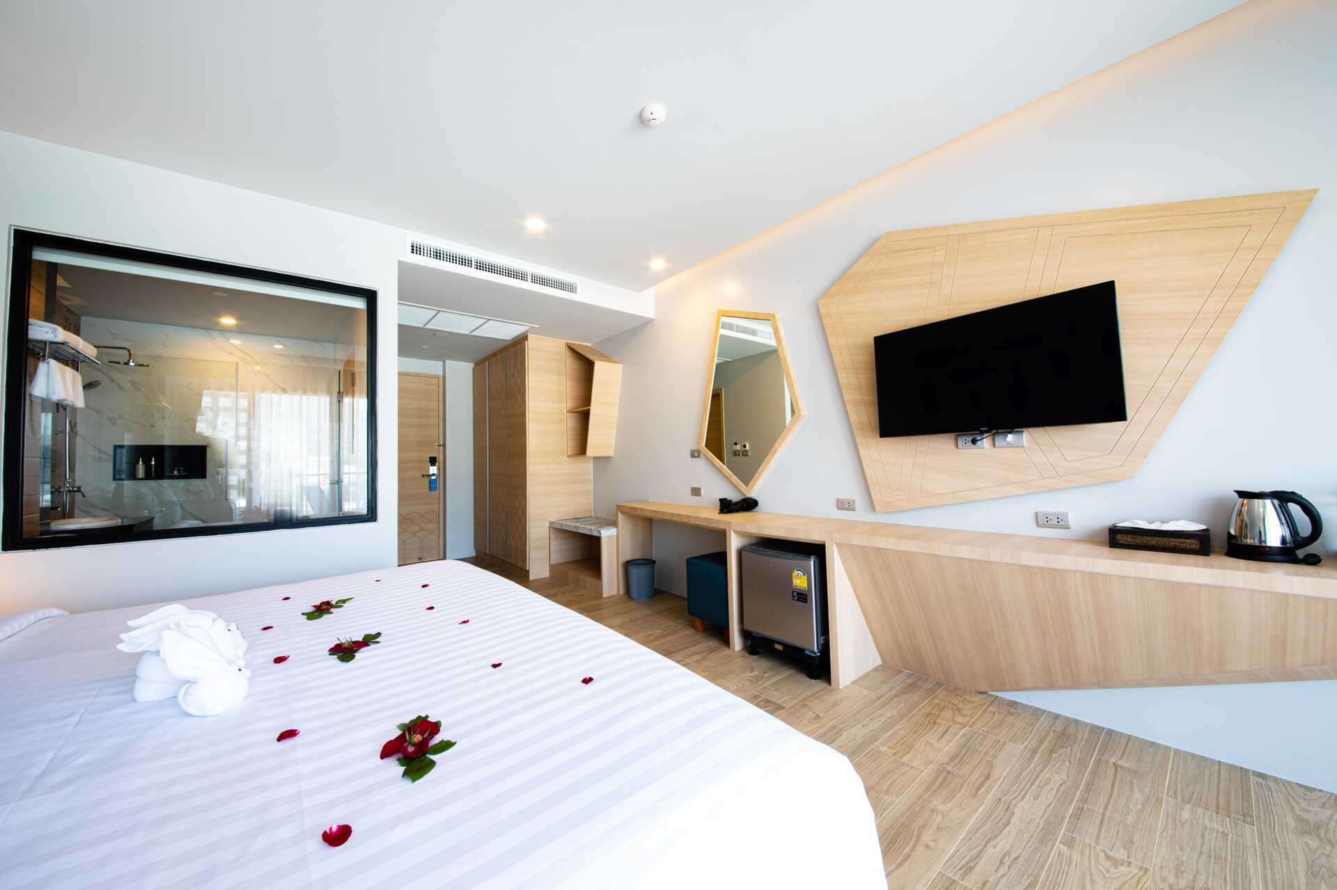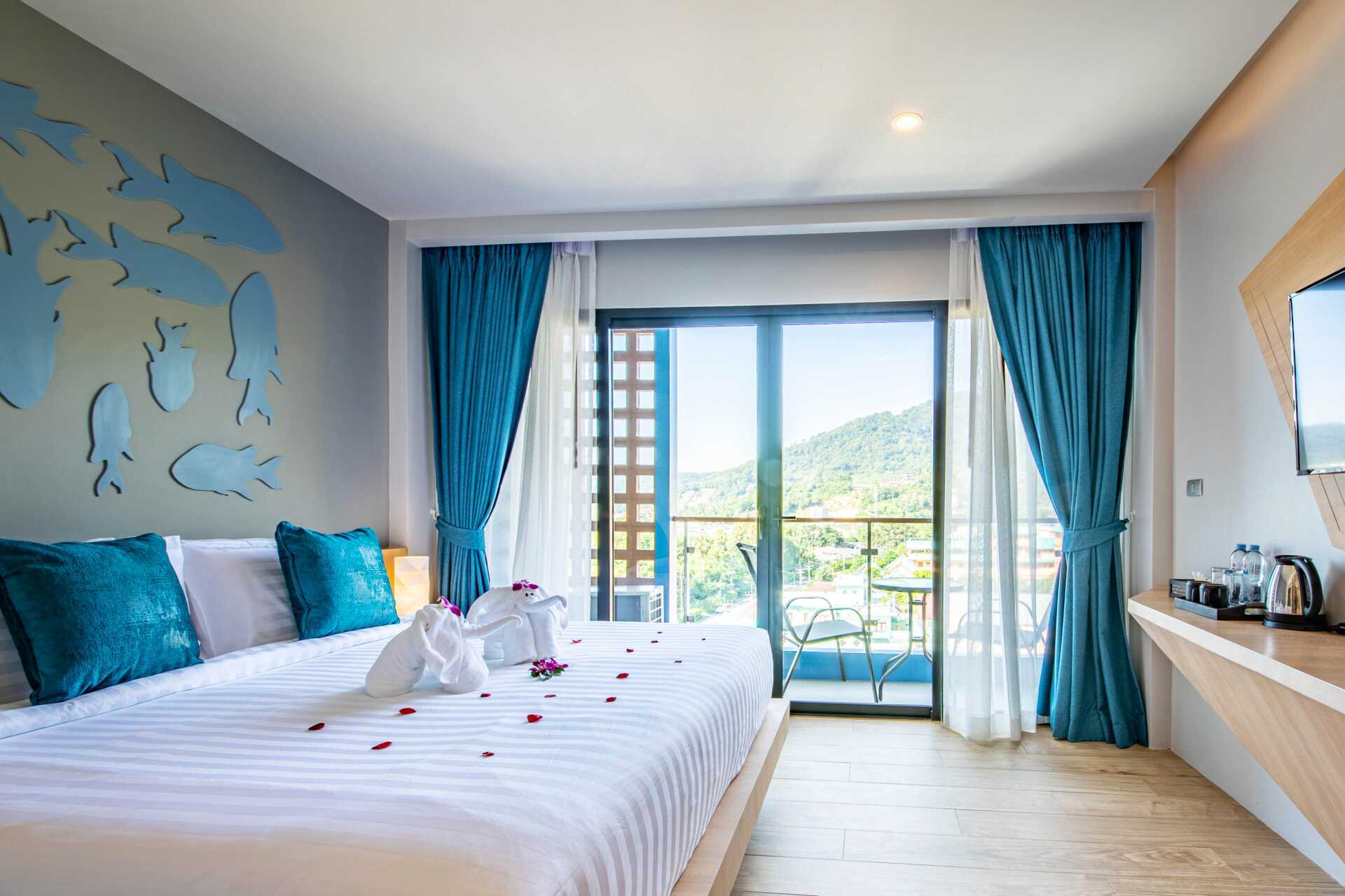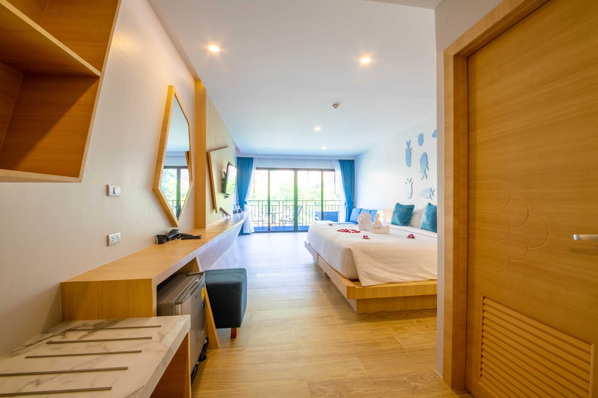 Deluxerum med balkong. En dubbelsäng och möjlighet till extrabädd i en enkelsäng. Wifi, luftkonditionering och deponering ingår. Kylskåp. Vattenkokare samt kaffe och te. Tv med internationella kanaler. Badrockar och tofflor. Hårtork. Badrum med dusch och wc. Städning 7 ggr/vecka.