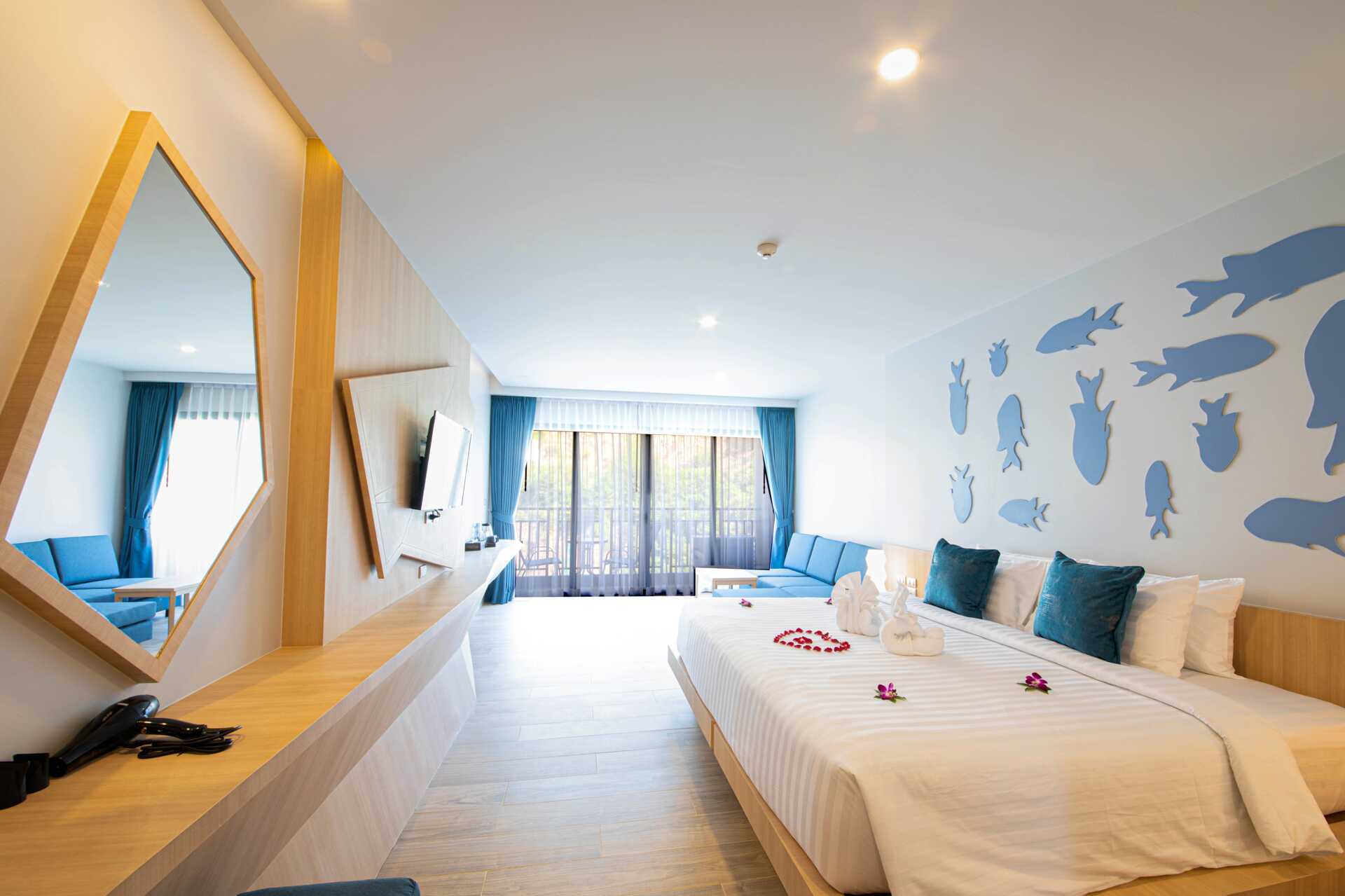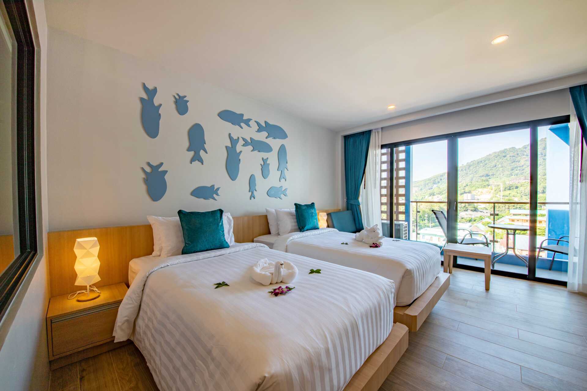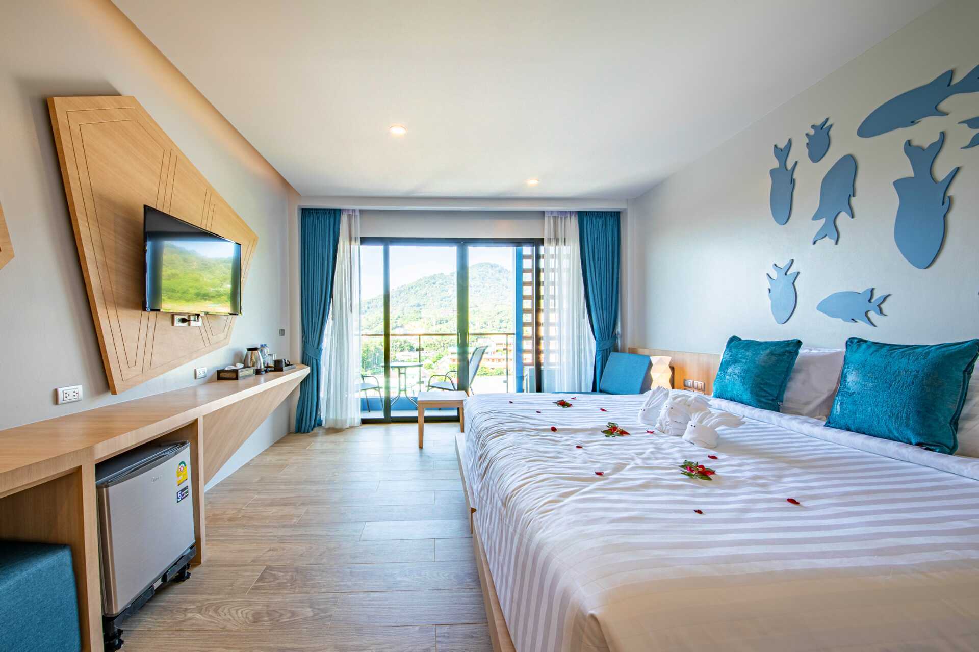 Deluxerum med balkong. En dubbelsäng och möjlighet till extrabädd i en enkelsäng. Wifi, luftkonditionering och deponering ingår. Kylskåp. Vattenkokare samt kaffe och te. Tv med internationella kanaler. Badrockar och tofflor. Hårtork. Badrum med dusch och wc. Städning 7 ggr/vecka.