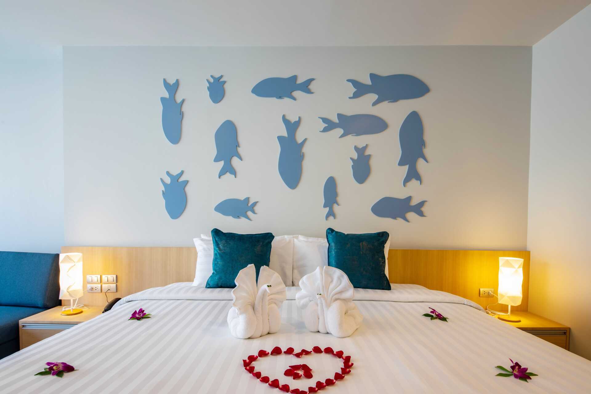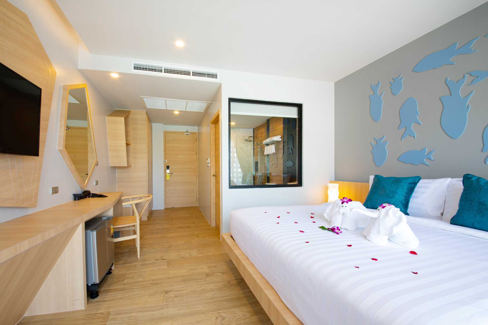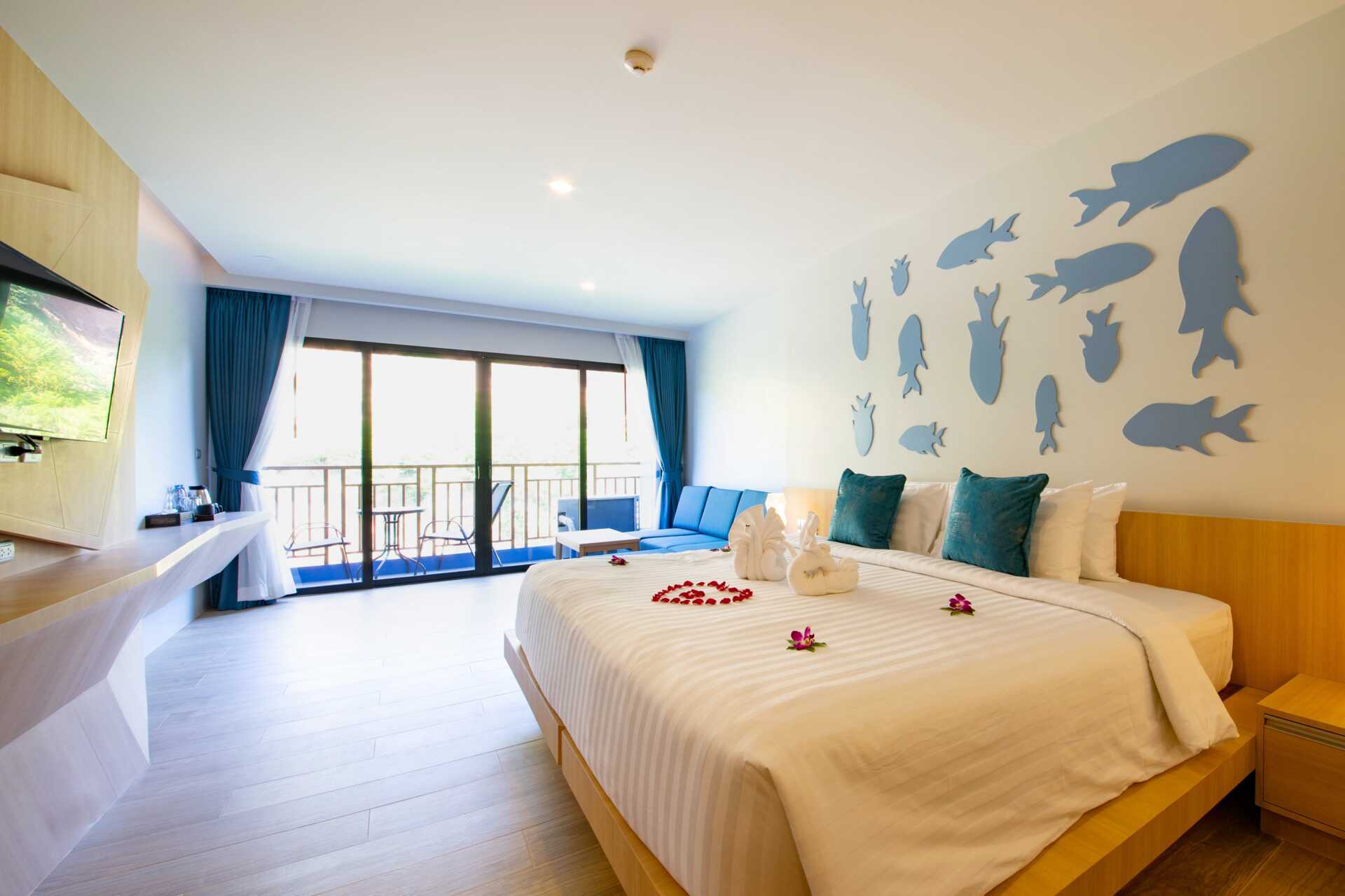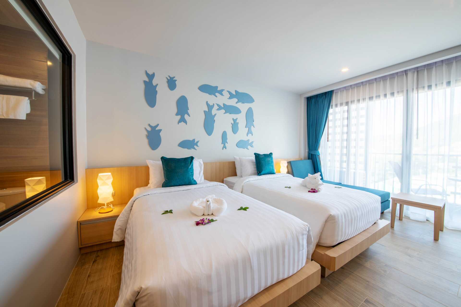 Deluxerum med balkong. En dubbelsäng och möjlighet till extrabädd i en enkelsäng. Wifi, luftkonditionering och deponering ingår. Kylskåp. Vattenkokare samt kaffe och te. Tv med internationella kanaler. Badrockar och tofflor. Hårtork. Badrum med dusch och wc. Städning 7 ggr/vecka.