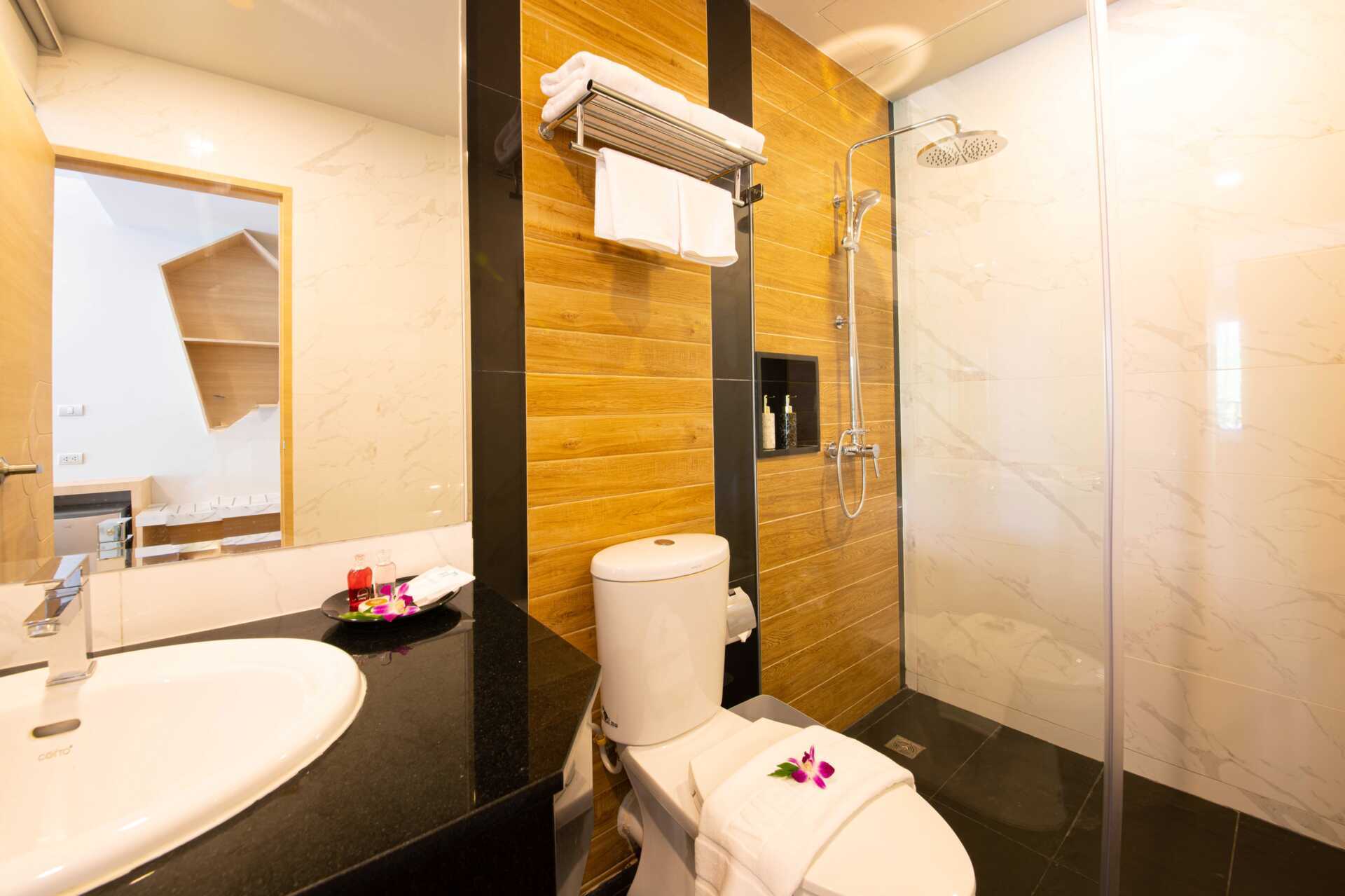 Executiverum med balkong. En dubbelsäng och möjlighet till extrabädd i en enkelsäng. Wifi, luftkonditionering och deponering ingår. Kylskåp. Vattenkokare samt kaffe och te. Tv med internationella kanaler. Badrockar och tofflor. Hårtork. Badrum med dusch och wc. Städning 7 ggr/vecka.