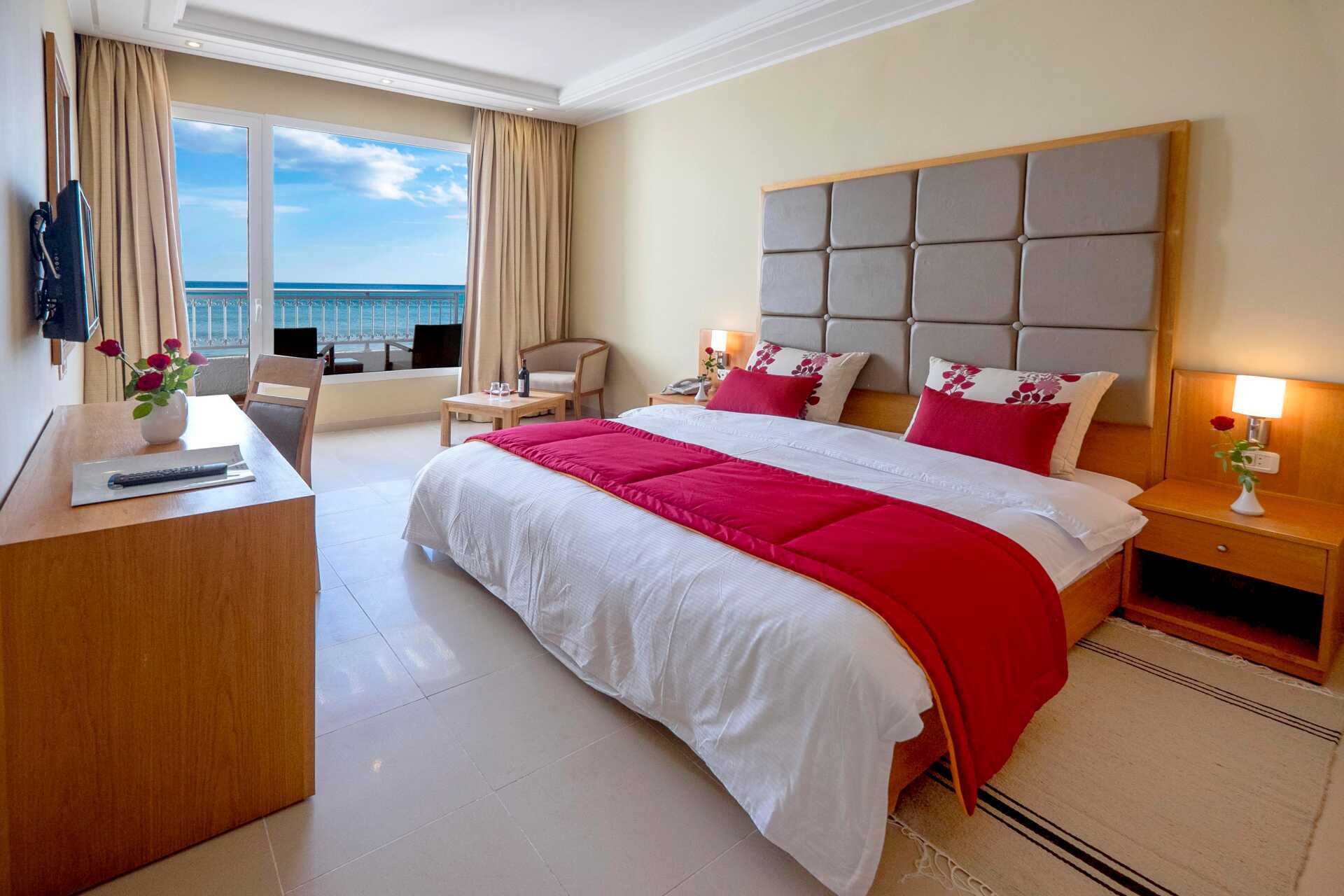 Dubbelrum med balkong eller terrass, vissa med havsutsikt. Rummen ligger i tvåvåningsbyggnader. En dubbelsäng. Möjlighet till extrabädd i enkelsäng. Wifi, luftkonditionering och deponering ingår. Kylskåp. Vattenkokare. Tv med internationella kanaler. Badrockar mot förfrågan. Hårtork. Badrum med badkar och wc. Städning 7 ggr/vecka.