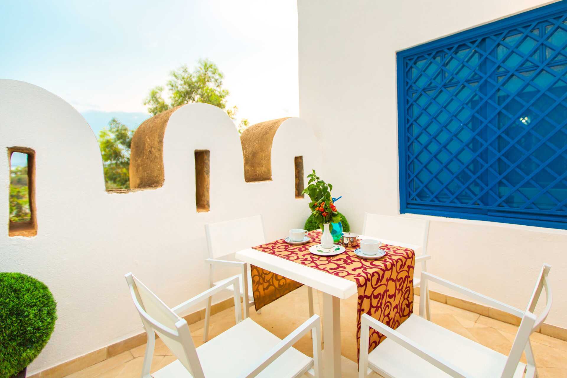 Svit med balkong eller terrass. Sviten består av två sovrum och ett vardagsrum. Ett sovrum med en dubbelsäng och ett med två enkelsängar. Möjlighet till extrabädd i bäddsoffa. Wifi, luftkonditionering och deponering ingår. Kylskåp. Tv med internationella kanaler. Hårtork. Badrum med badkar och wc. Städning 7 ggr/vecka.