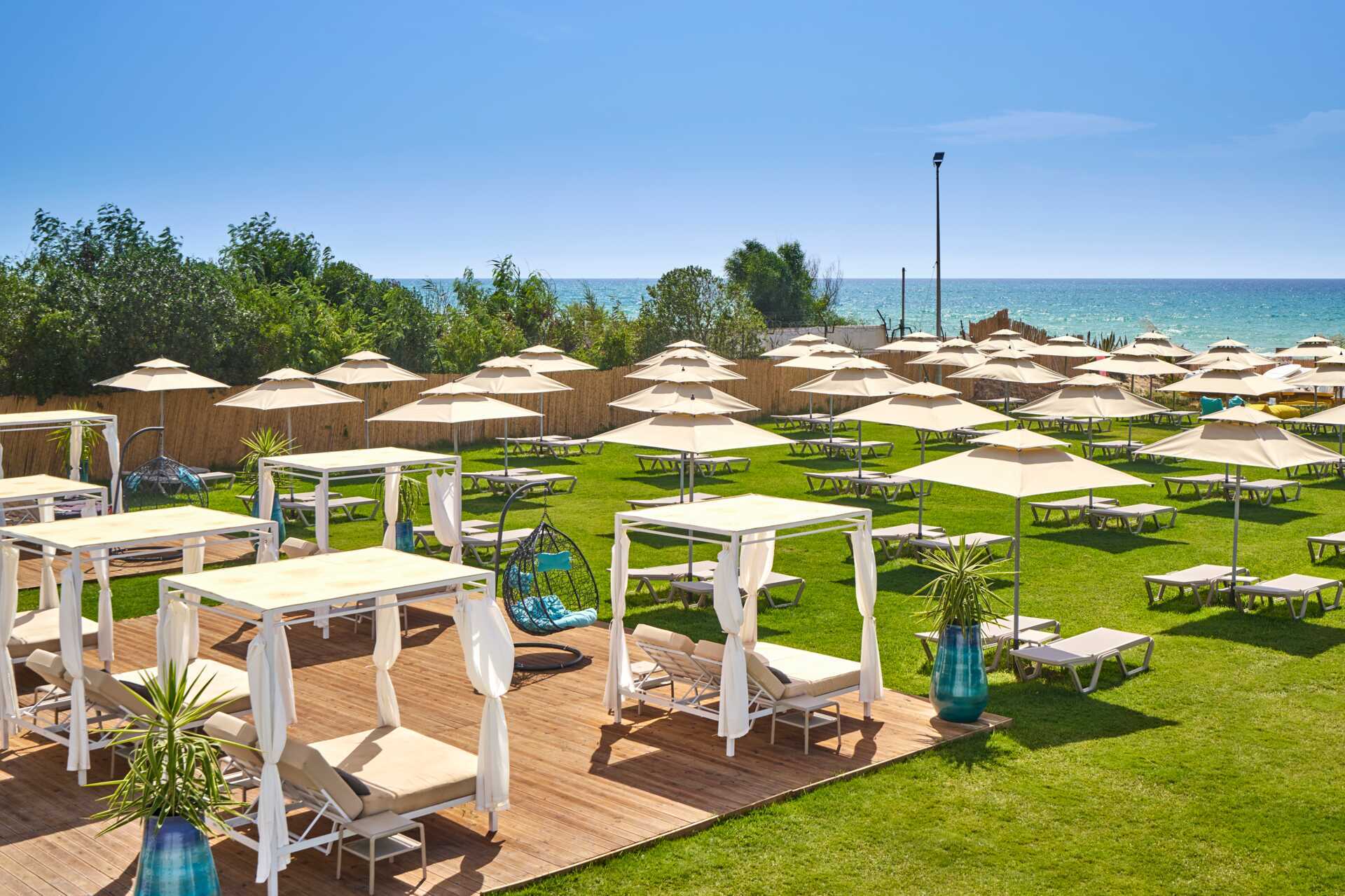 Hotellet har två stora pooler, varav en med tre vattenrutschkanor. Solstolar och parasoller ingår. Poolhanddukar mot deposition. På den privata delen av stranden ingår solstolar, parasoller och strandhanddukar och i perioden 1 juni till 15 september finns även motoriserade vattensporter mot avgift. Det finns även en uppvärmd inomhuspool i perioden 1 november till 31 mars. Burkini får endast användas på stranden.