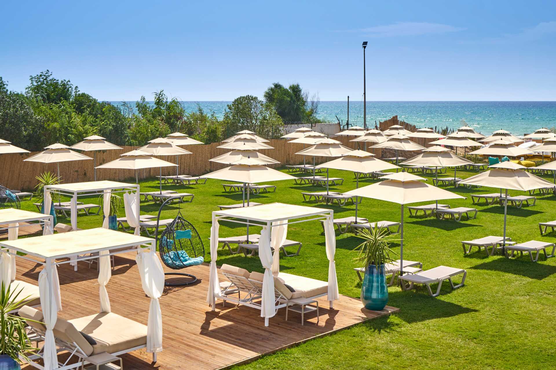 Hotellet har två stora pooler, varav en med tre vattenrutschkanor. Solstolar och parasoller ingår. Poolhanddukar mot deposition. På den privata delen av stranden ingår solstolar, parasoller och strandhanddukar och i perioden 1 juni till 15 september finns även vattensporter mot avgift. Det finns även en uppvärmd inomhuspool i perioden 1 november till 31 mars. Burkini får endast användas på stranden.